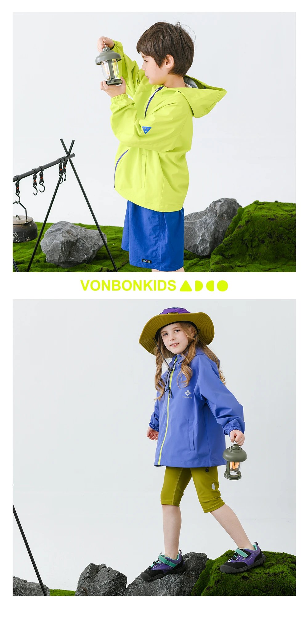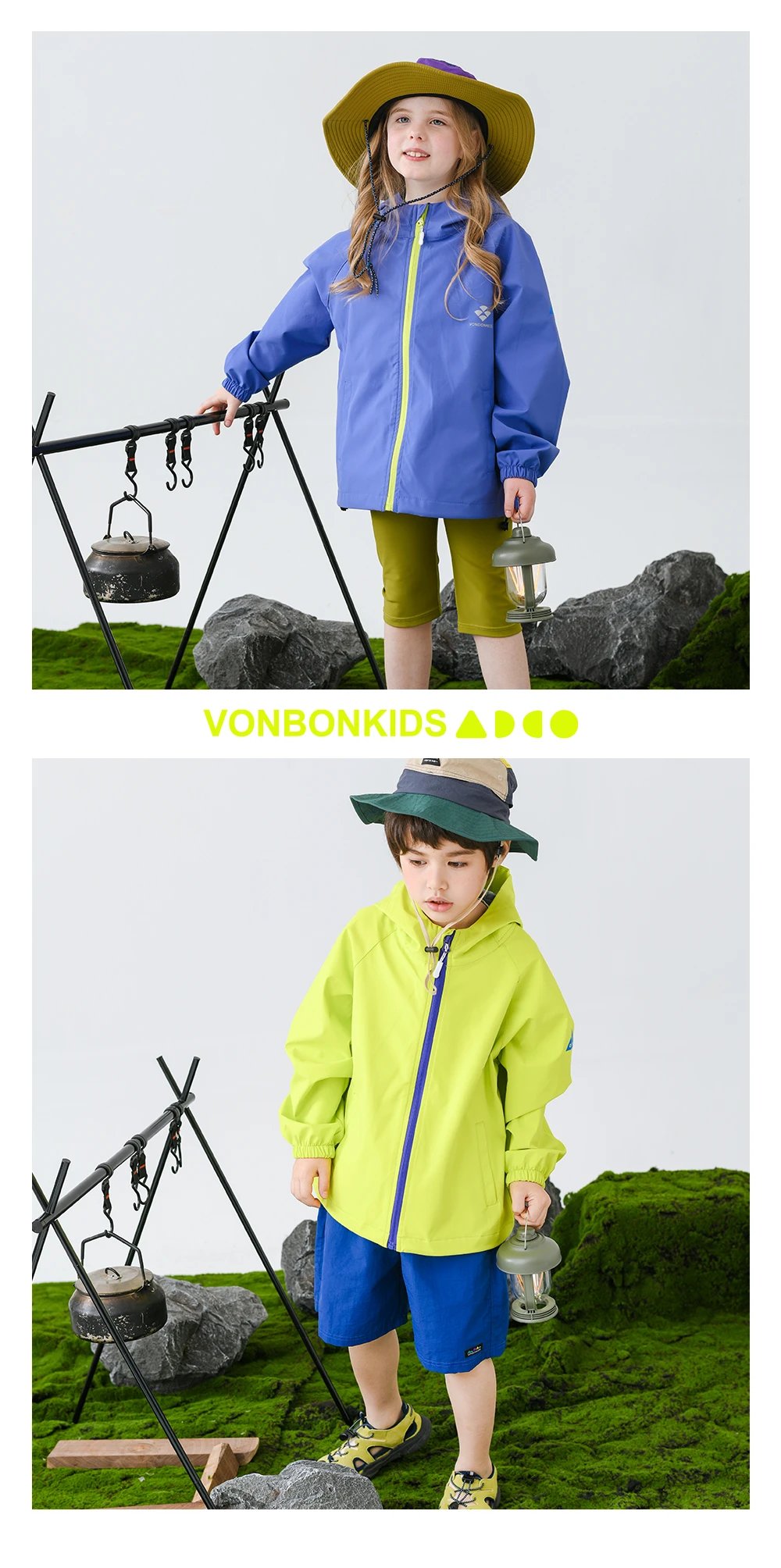 vonbonkids 2026春季新款山系亮彩专业户外防水连帽冲锋衣S07C25116
