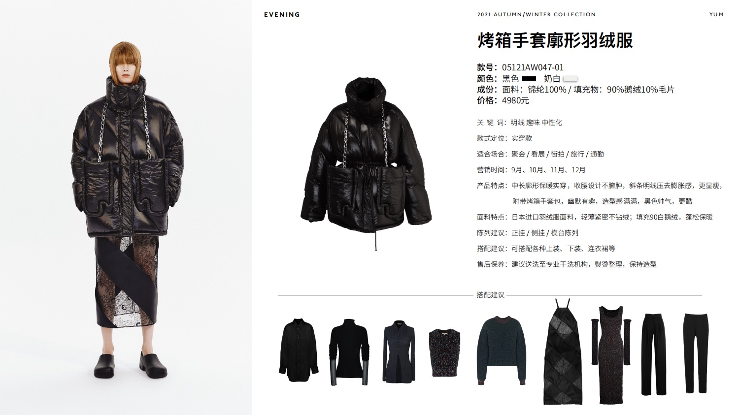 EVENING烤箱手套廓形羽绒服 黑色(含手套和羽绒服各一件)【可口系列】