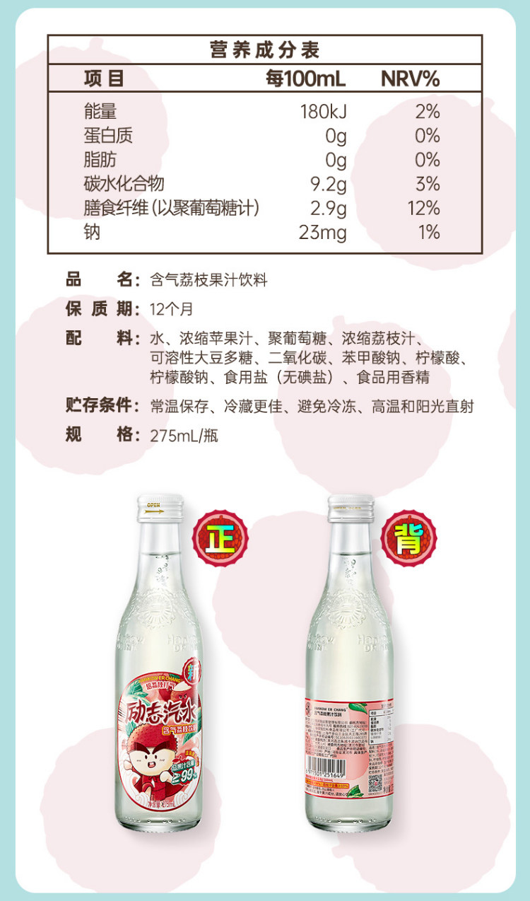 汉口二厂 励志汽水含气荔枝饮料果汁碳酸饮料 275ml*12瓶/箱(包邮直发)