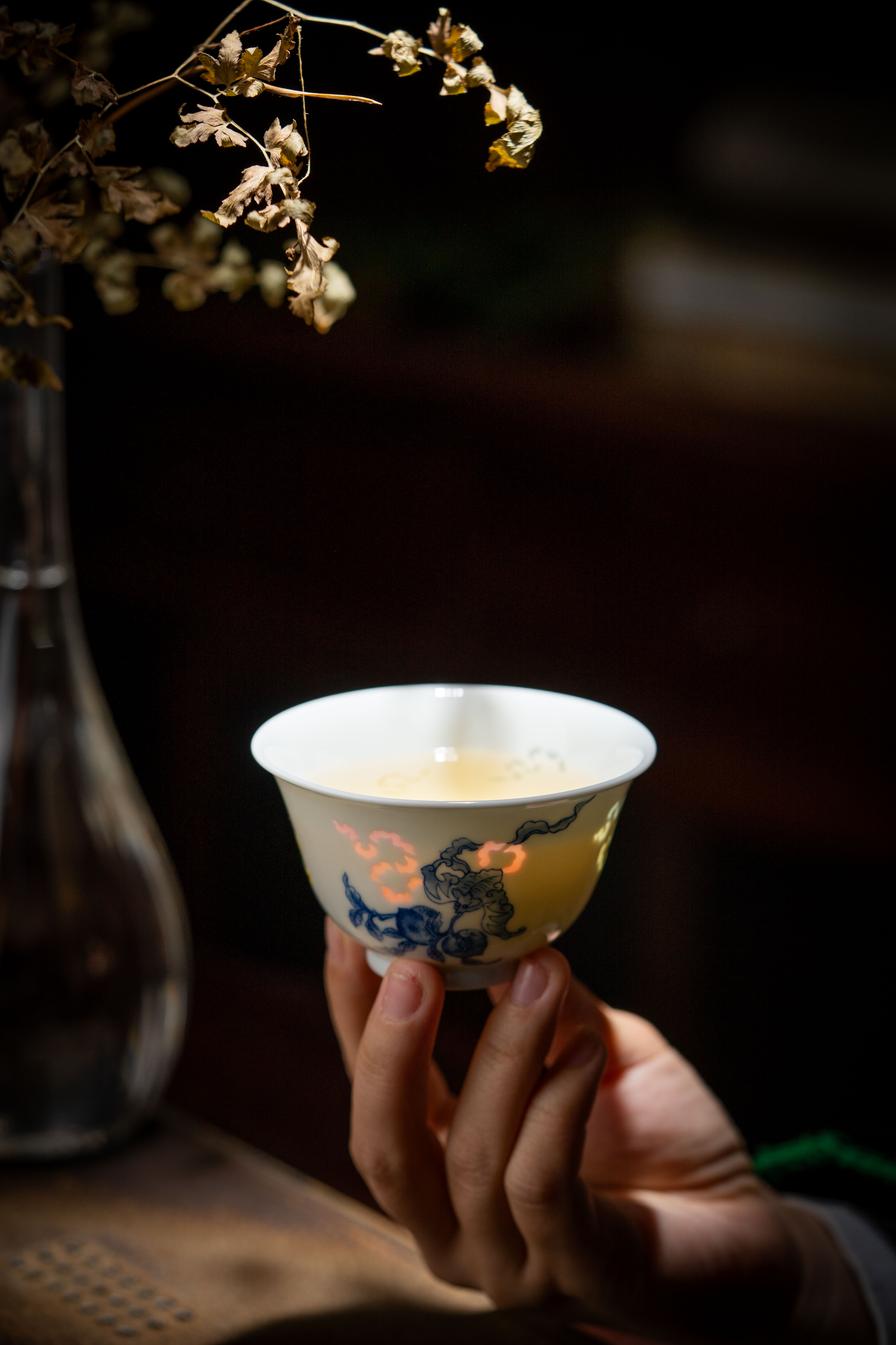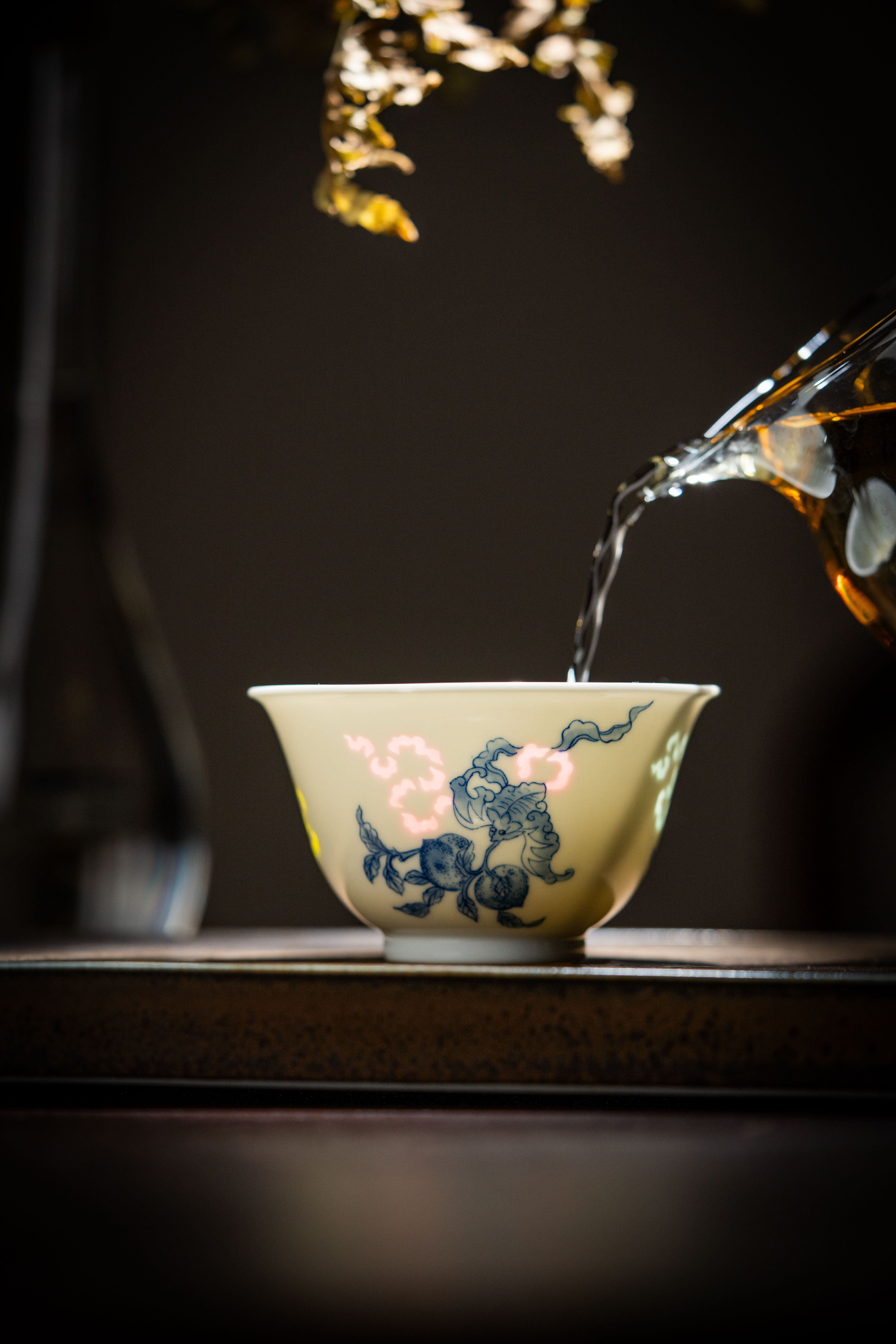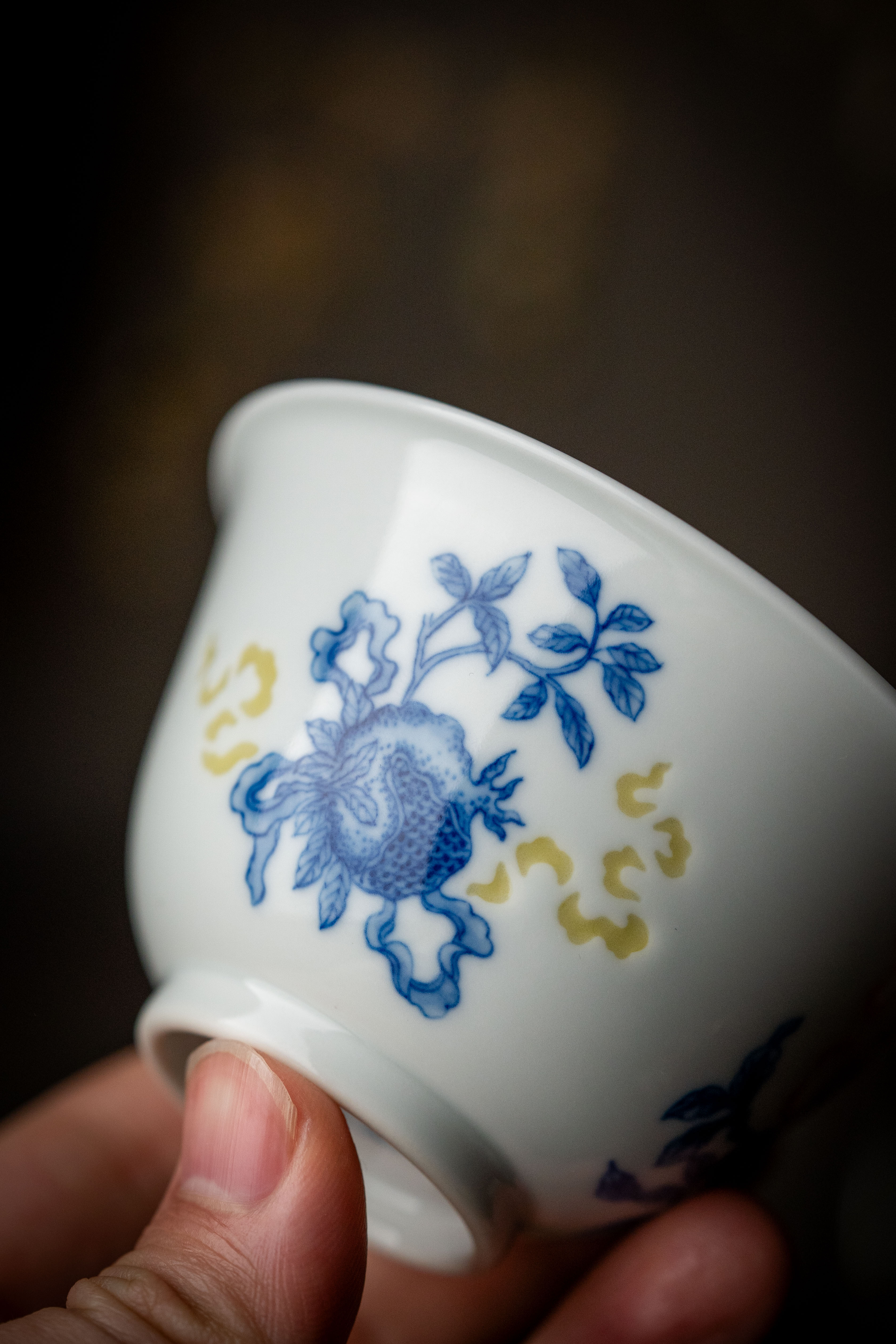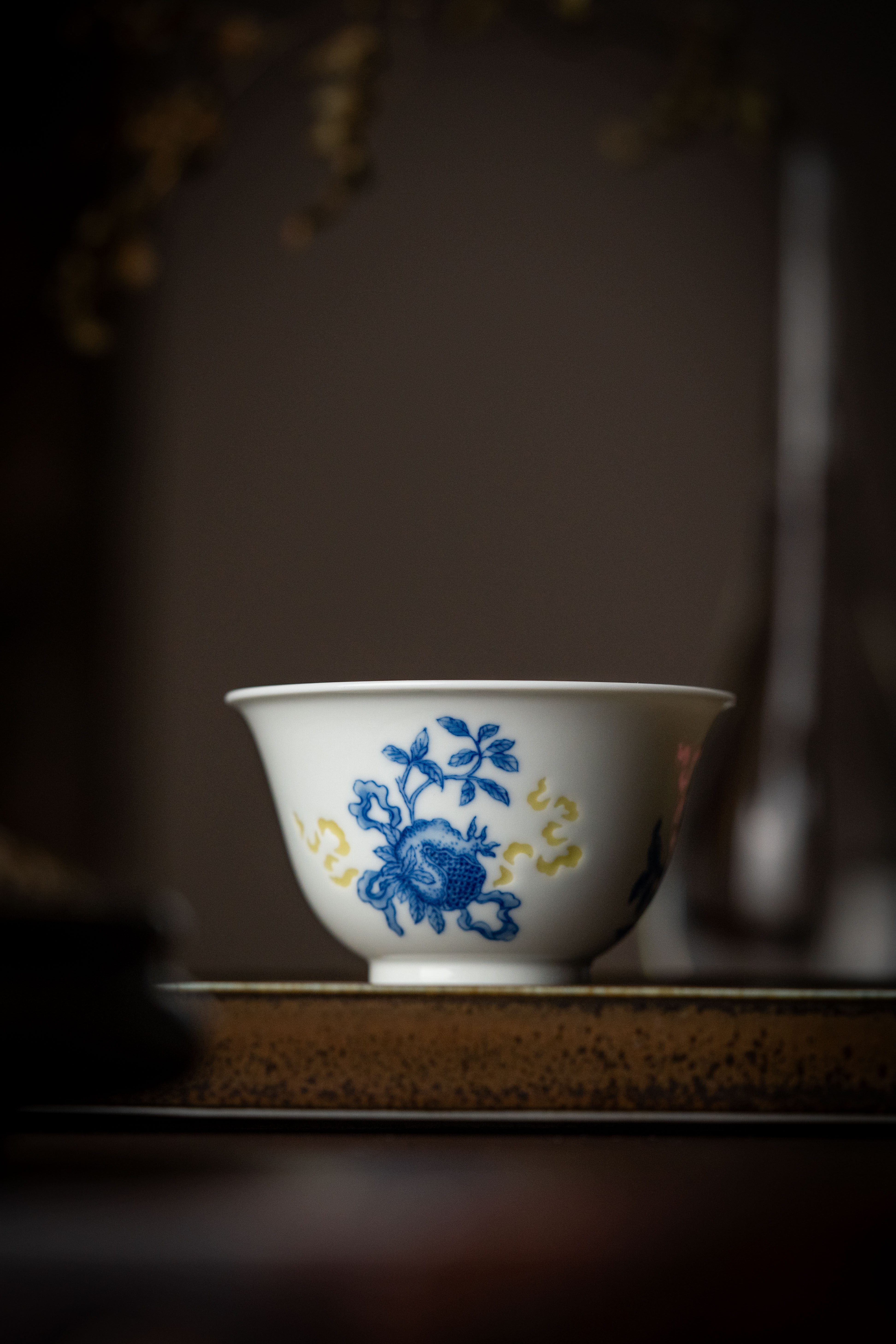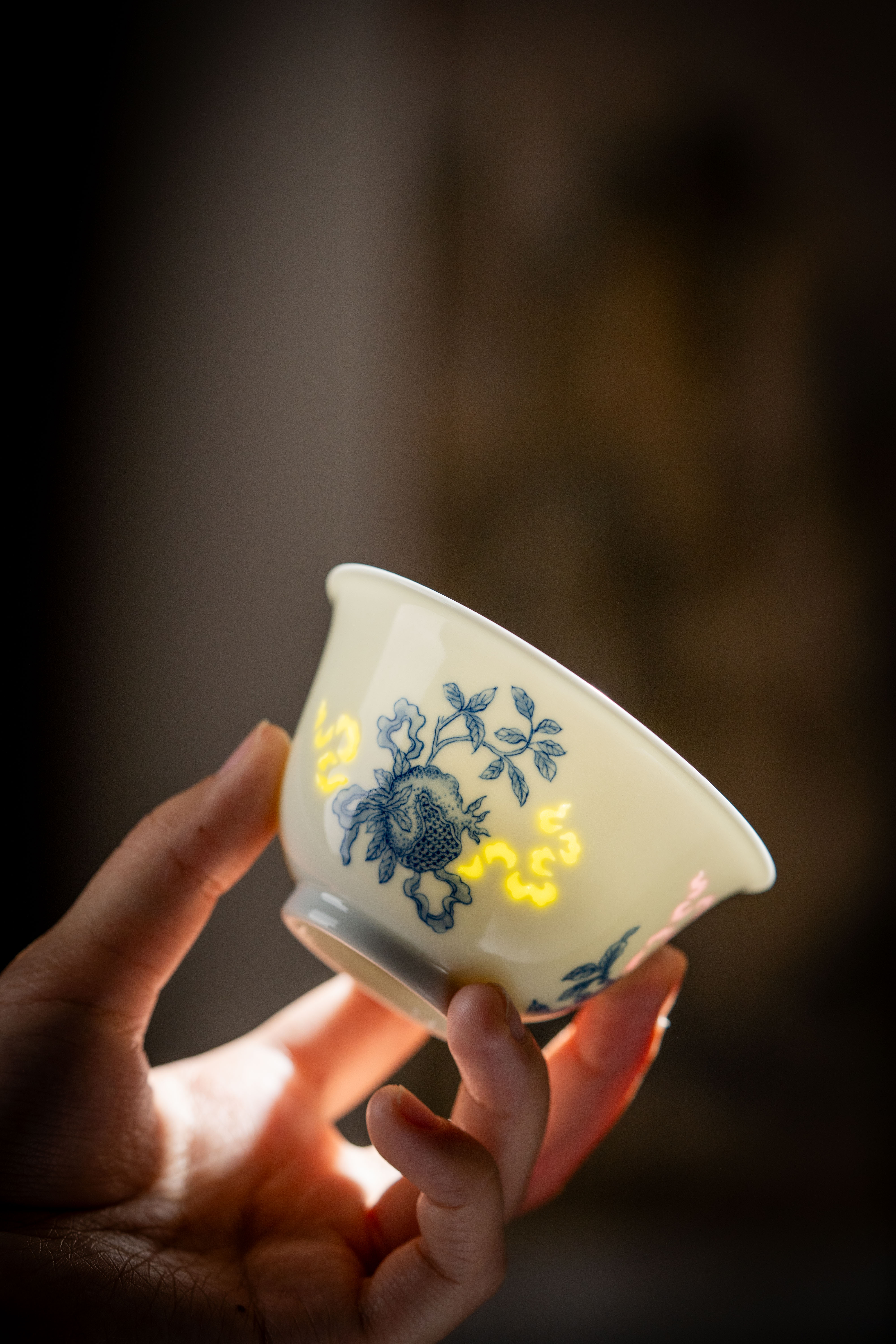 富玉窑 景德镇全手工青花玲珑三多福手作茶器品茗杯主人杯