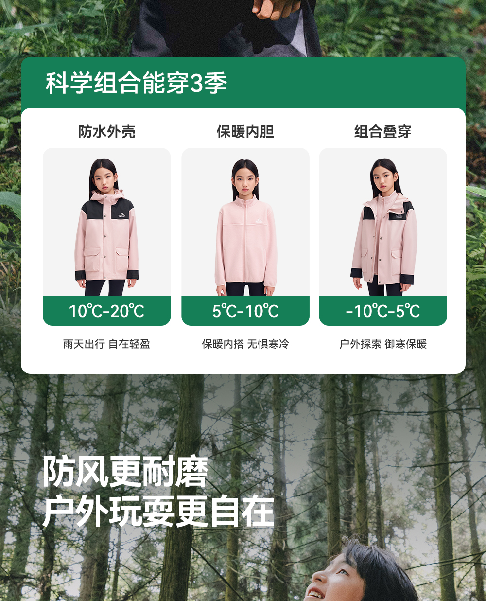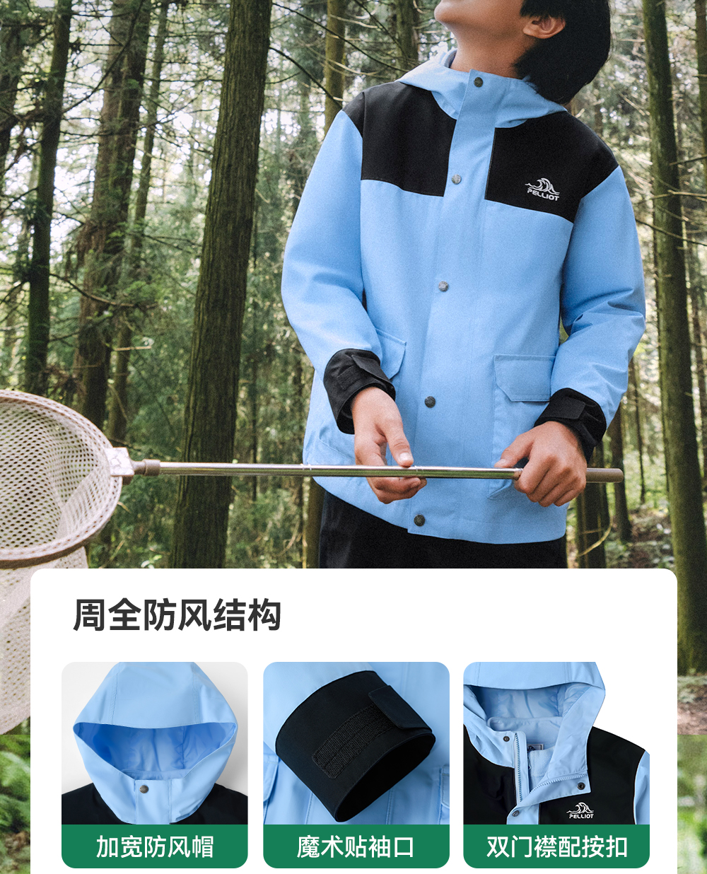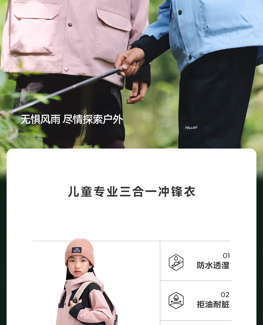 伯希和户外儿童三合一冲锋衣摇粒绒保暖内胆上衣暴雨级防水登山服