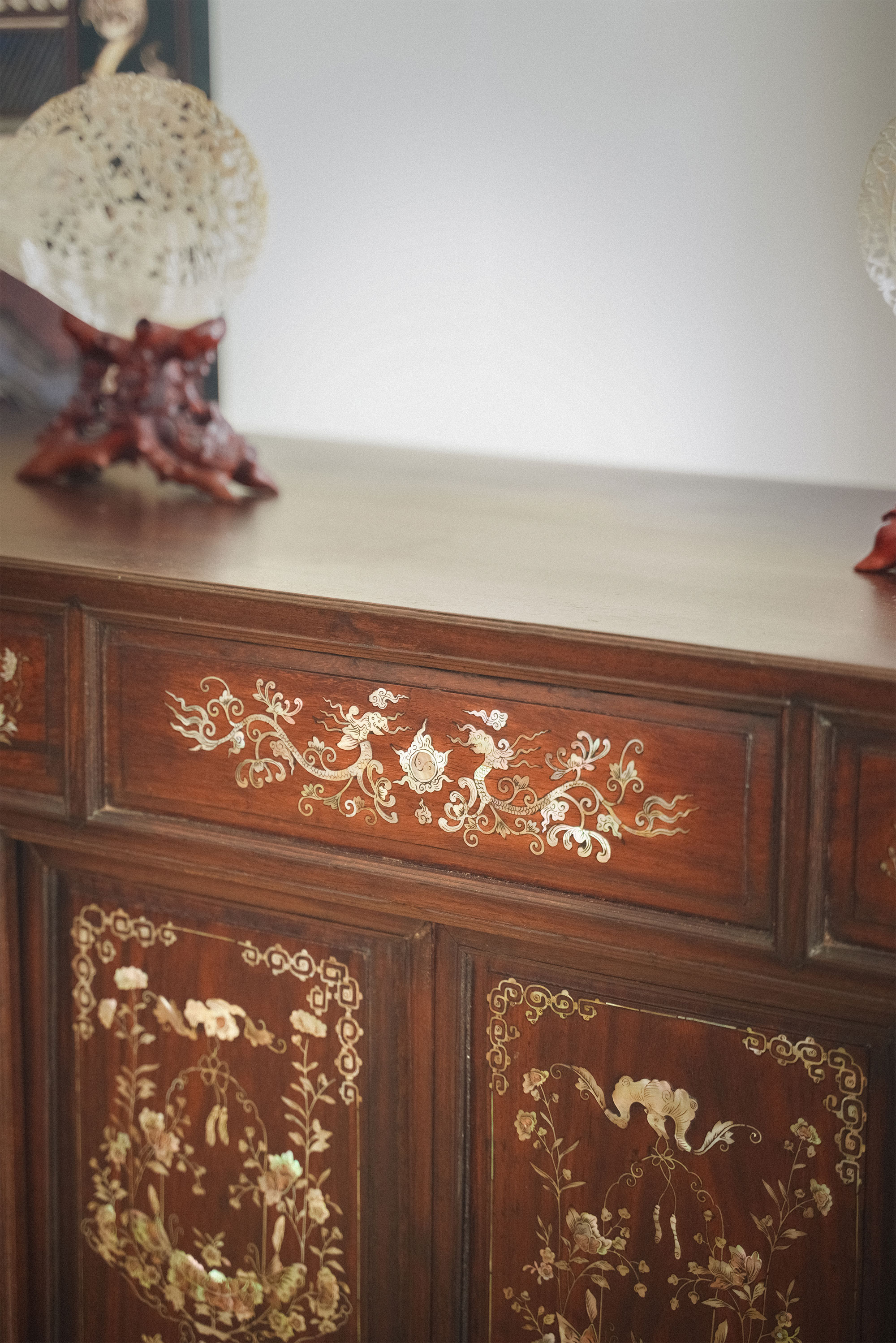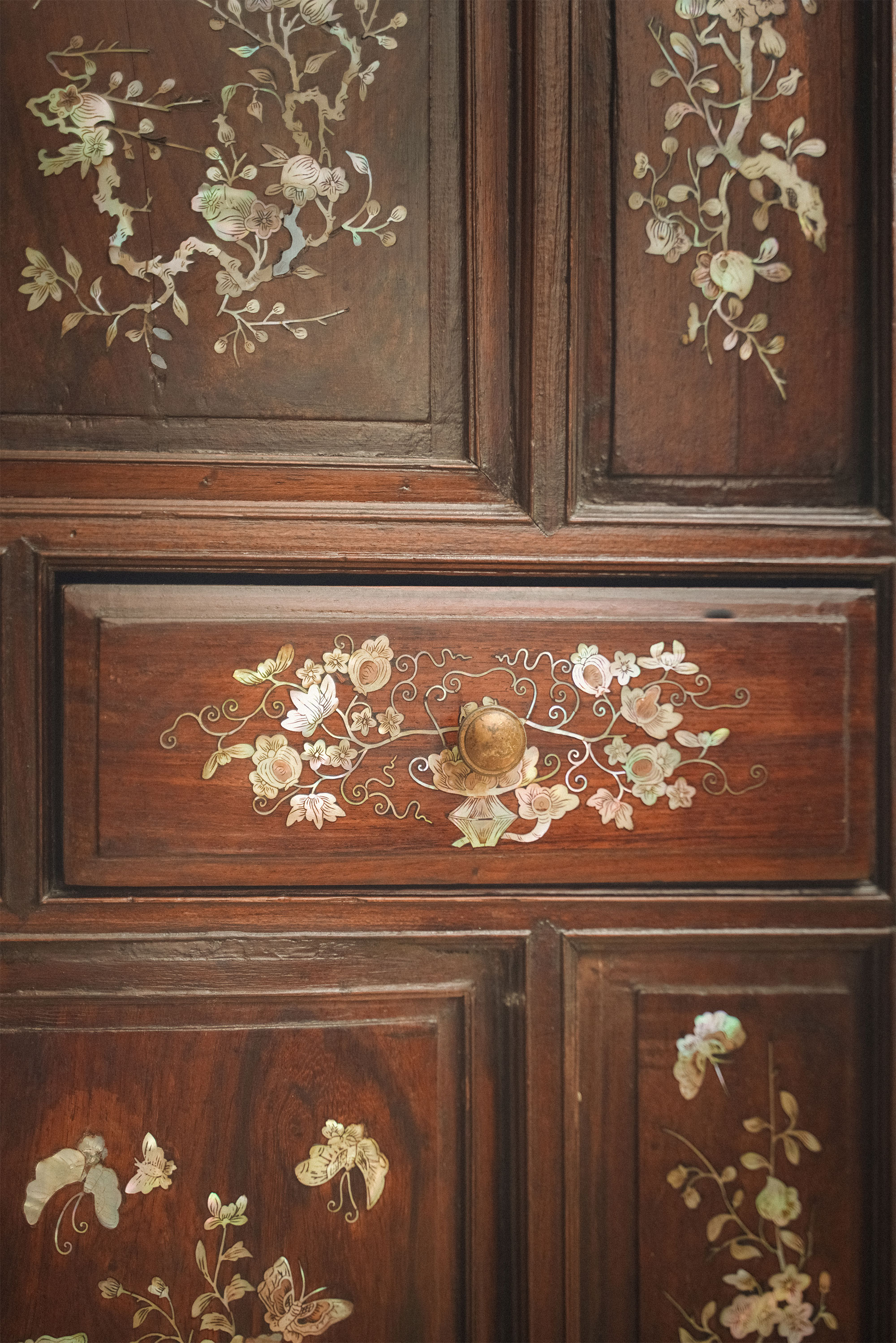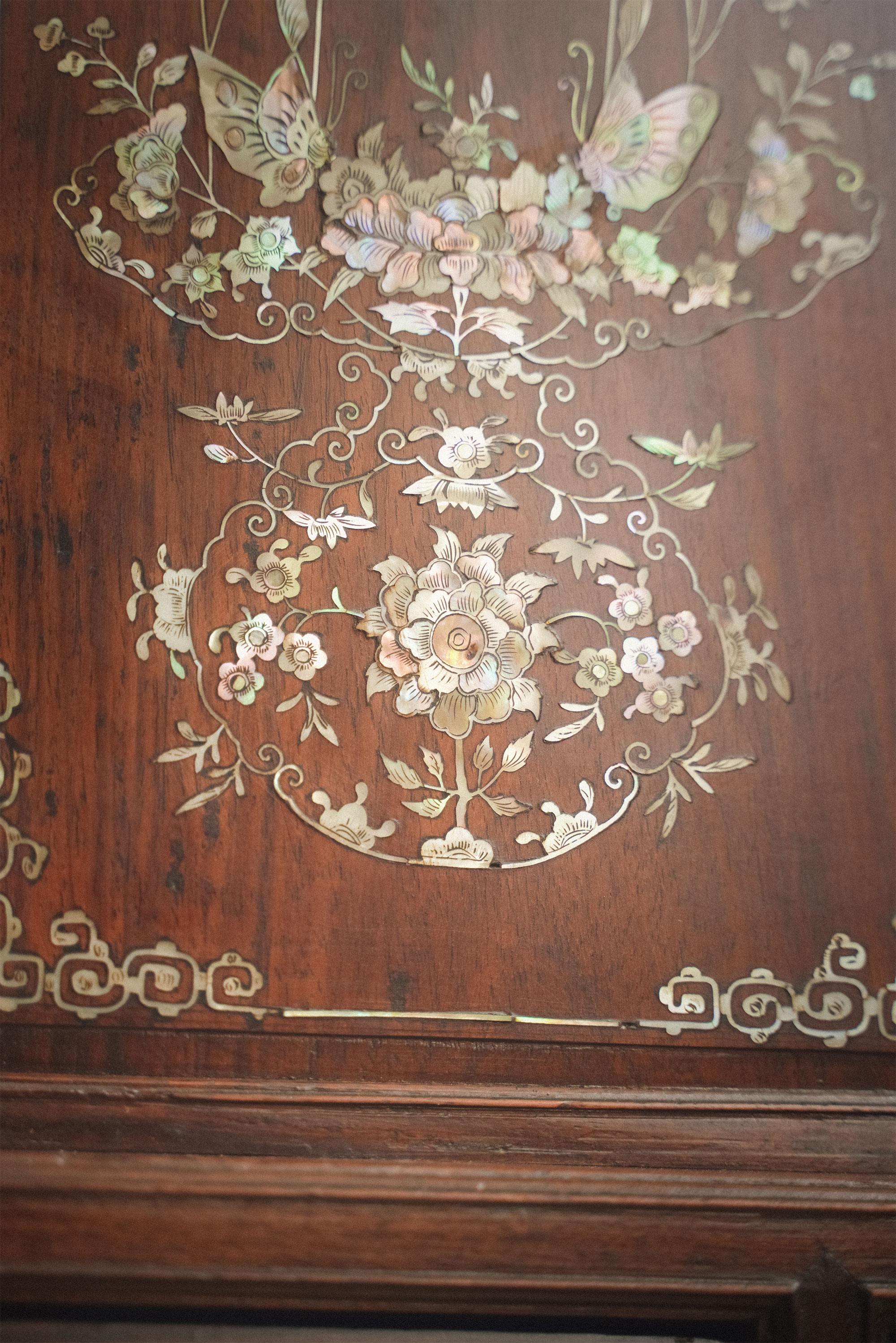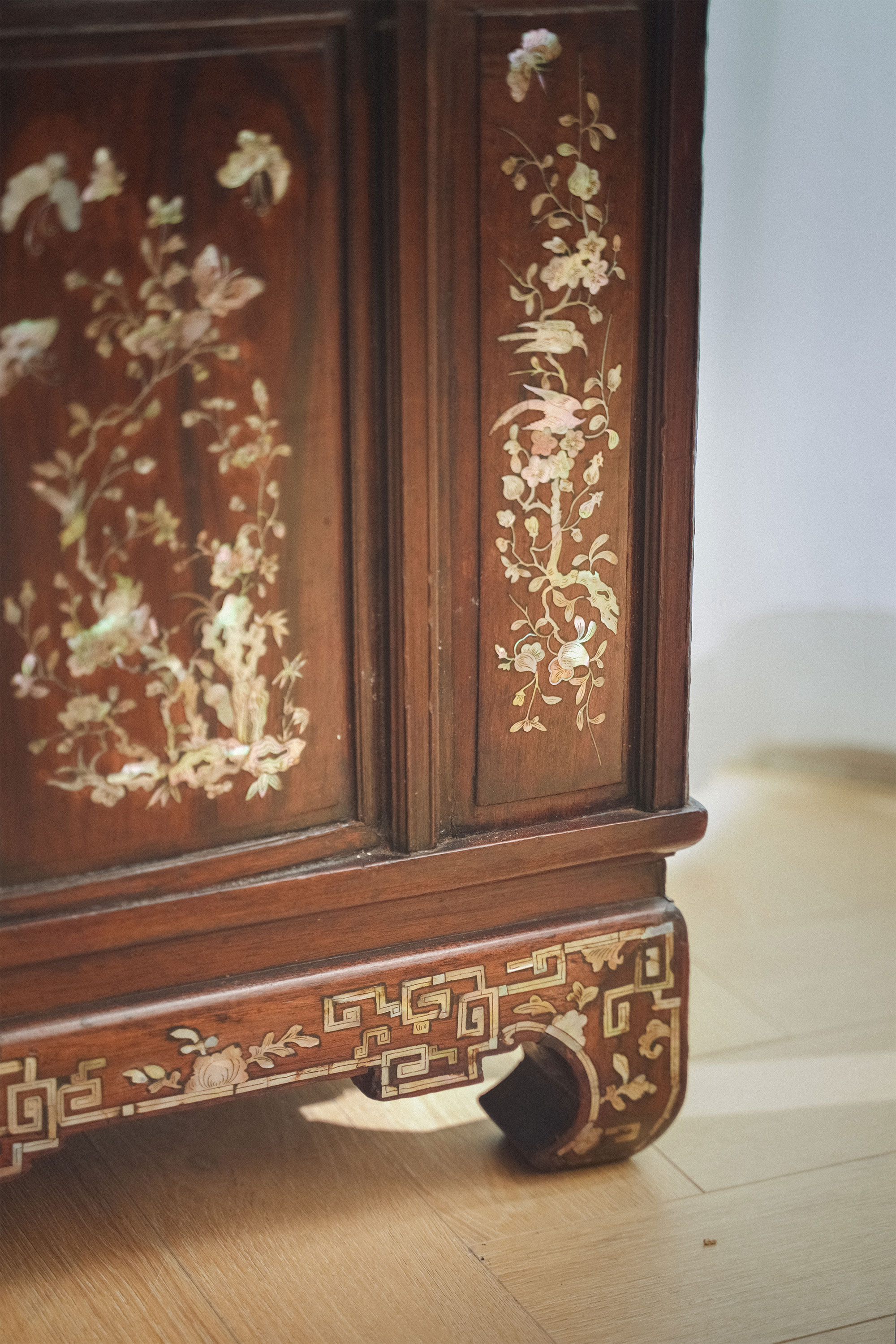 19世纪末亚洲出品「蝶恋花」主题螺钿镶嵌边柜