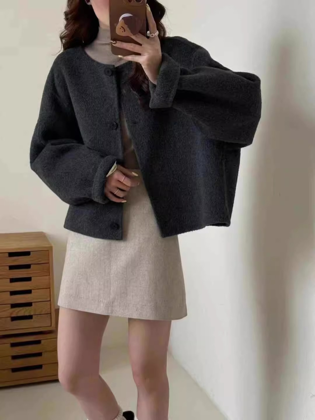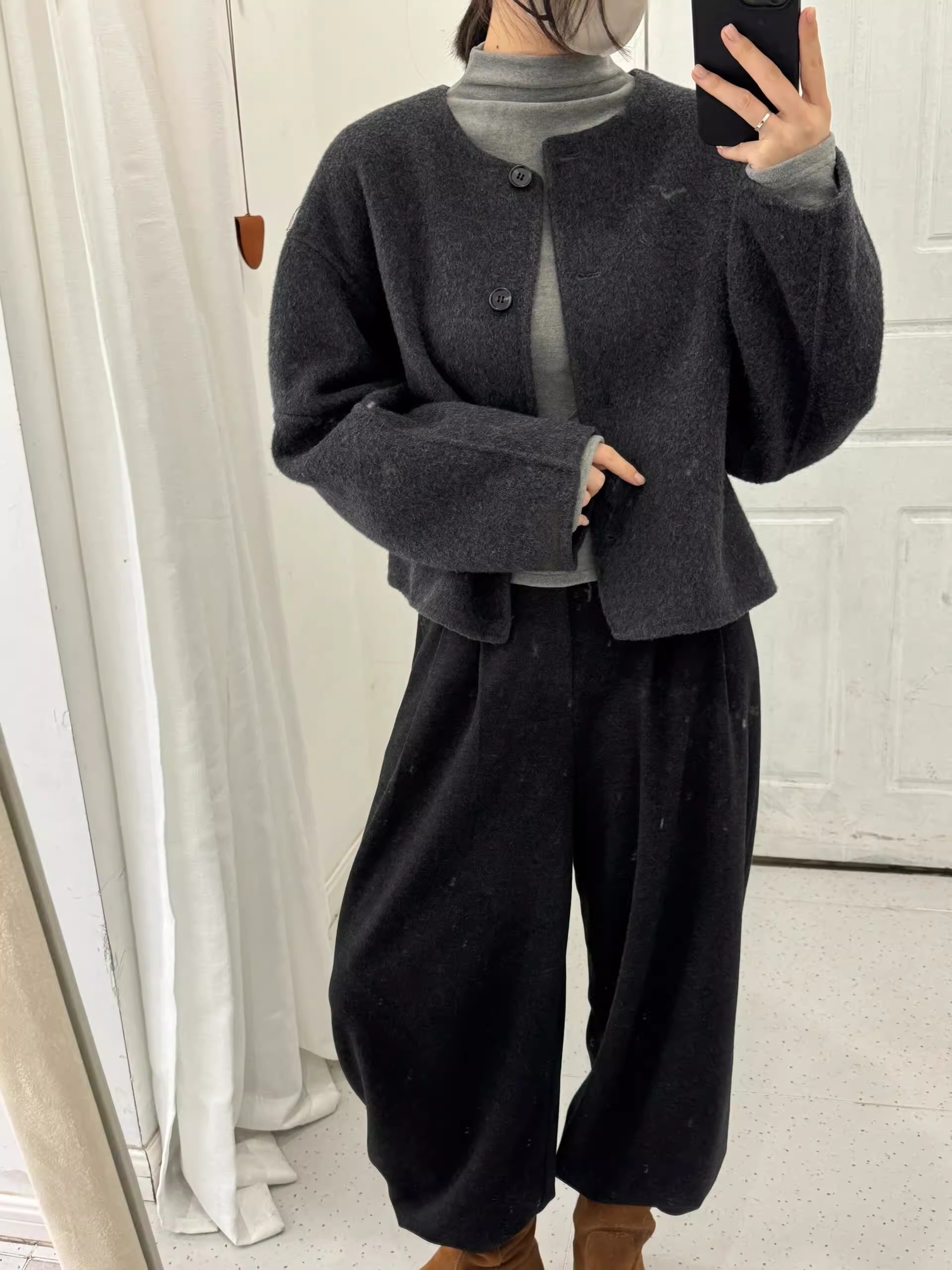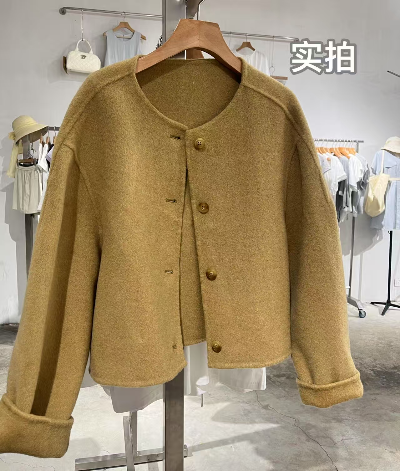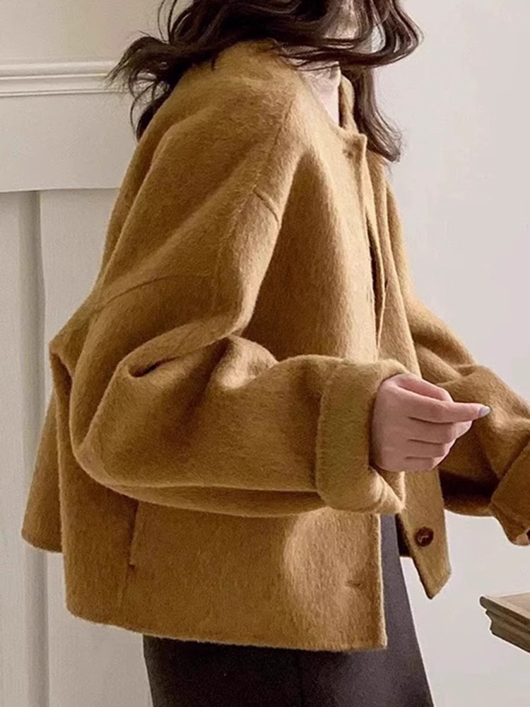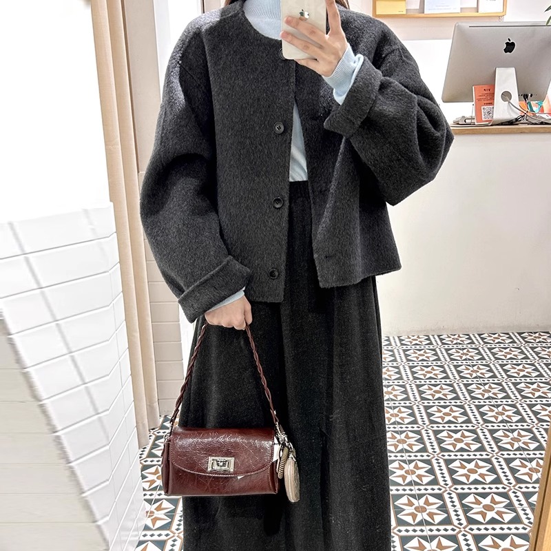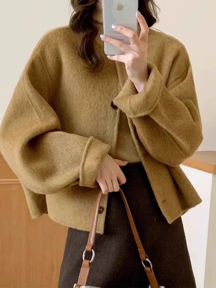 【YW】无忧购““短款韩版宽松小个子羊毛呢外套”8805韩版4粒扣(截单后3-5天发货)