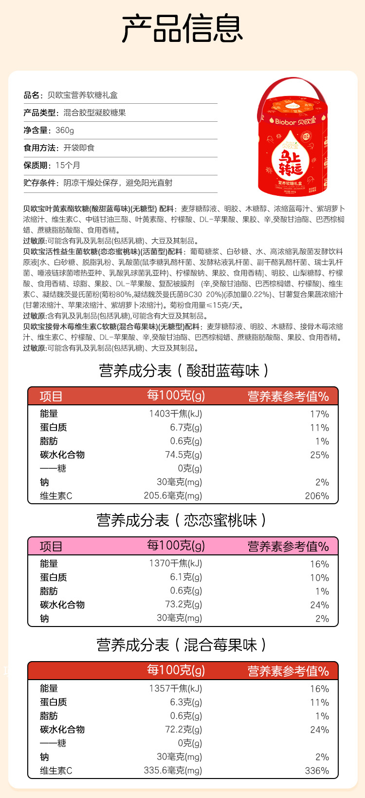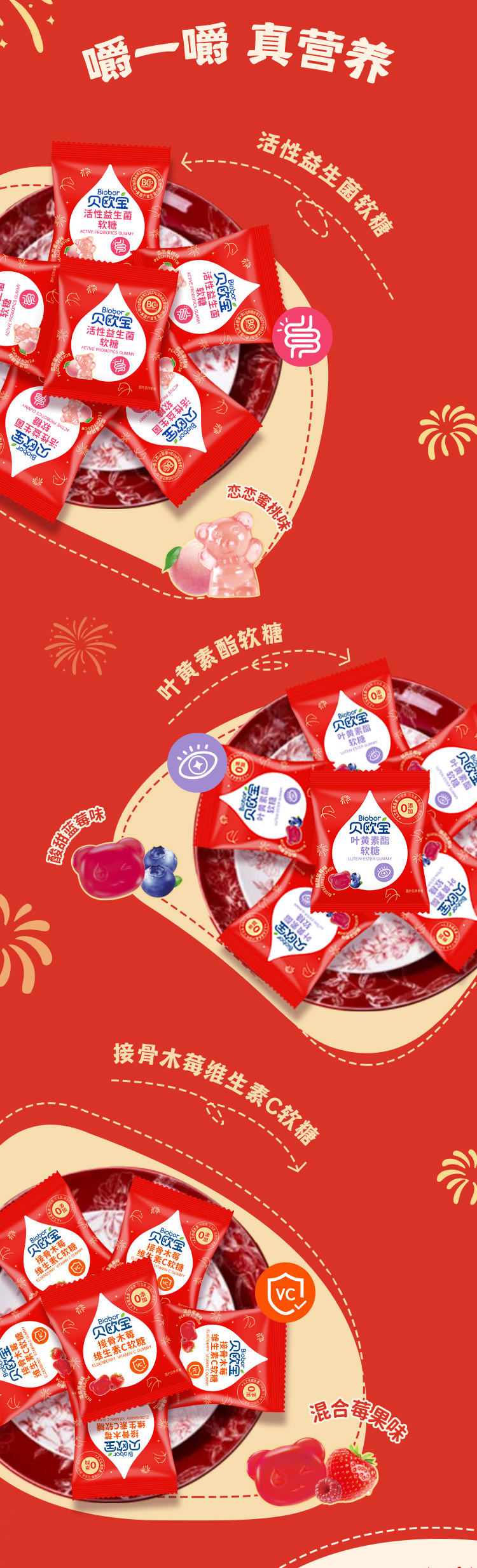 贝欧宝益生菌小熊糖果叶黄素酯维生素C软糖送礼年货礼盒糖果零食