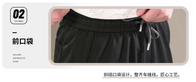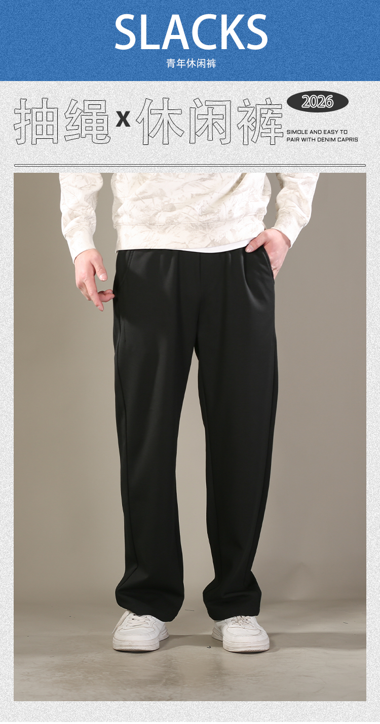 DRONKOO 2026 花色抽绳松紧腰左袋绣线后贴袋薄卫裤长裤