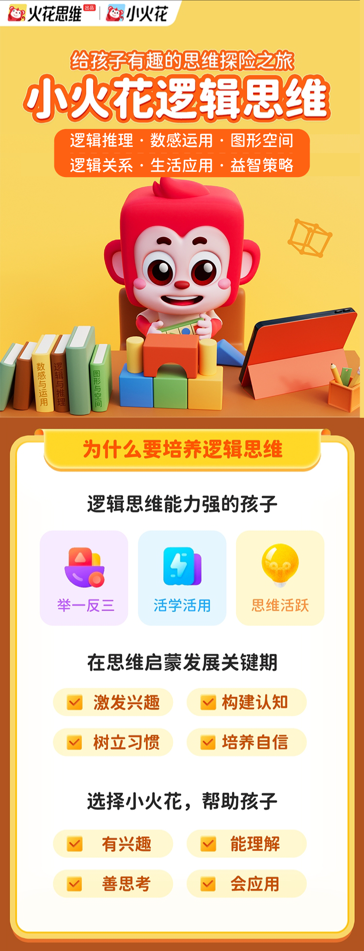 火花思维-小火花AI课 9级畅学版三年卡| 600+次思维训练 500+次线上实践 50+动画场景 108次逻辑表达| 火花直播课同步课程体系内容| 3-12岁数学逻辑思维