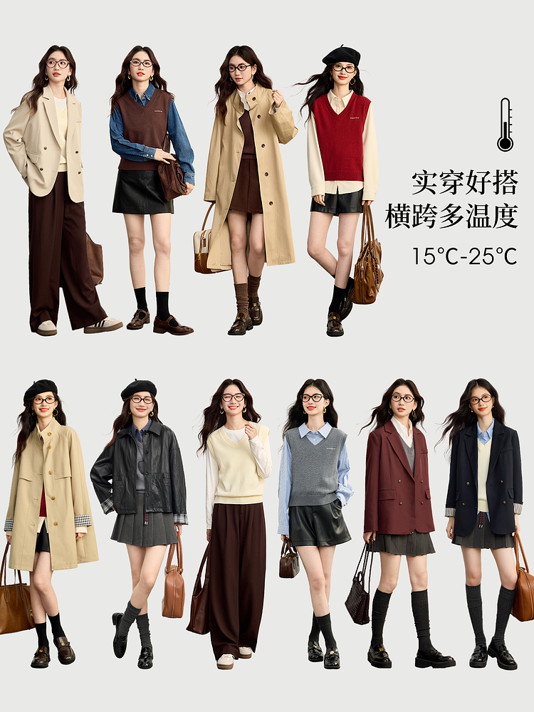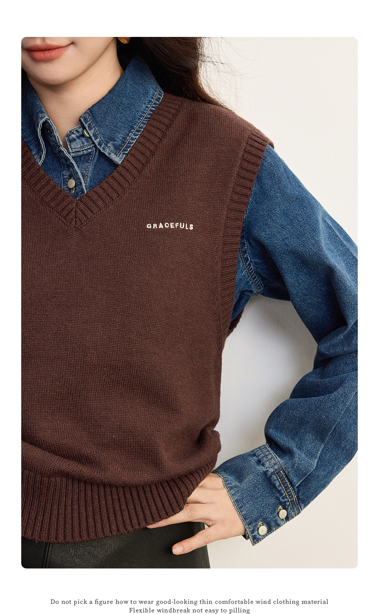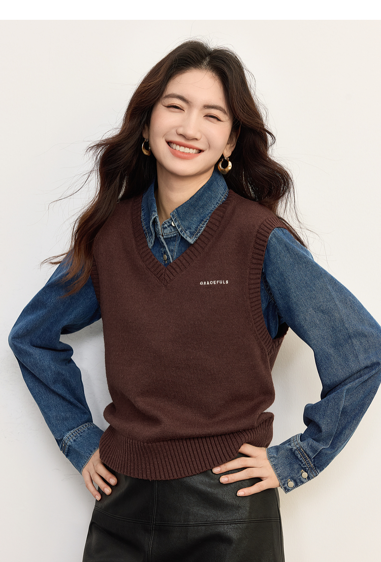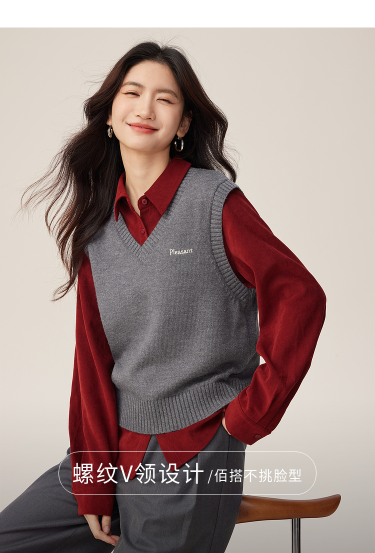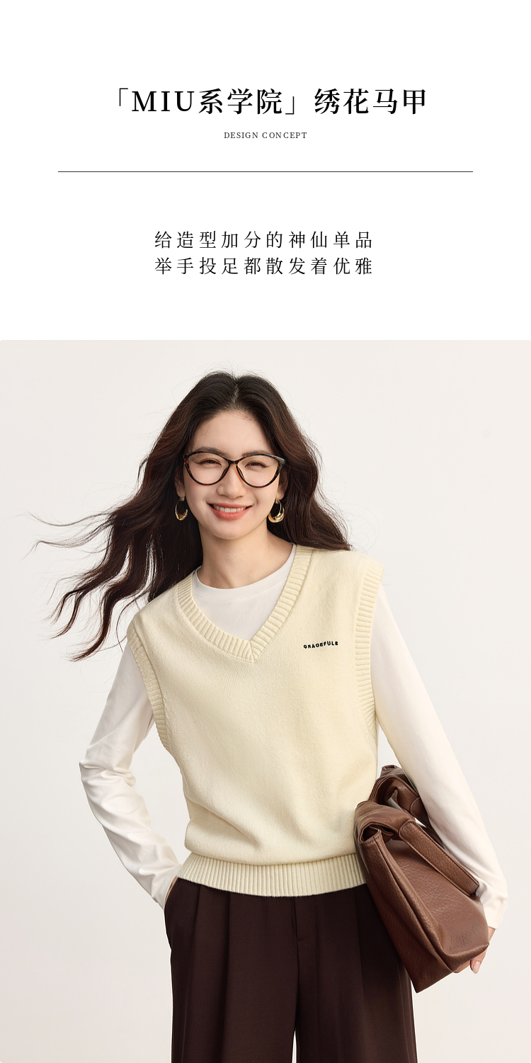 【09/10新品】熙世界MIU系学院风V领针织背心女2025秋冬新款叠穿绵羊毛马甲上衣