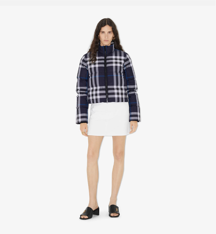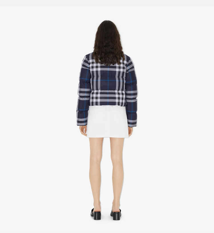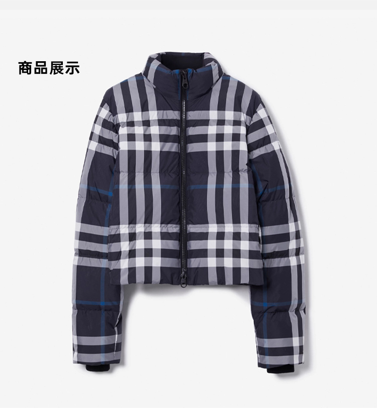 BURBERRY 巴宝莉 女士格纹短款羽绒服 深炭蓝色 8057842 B3421