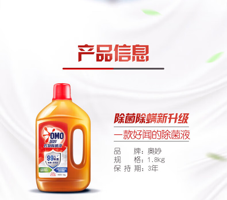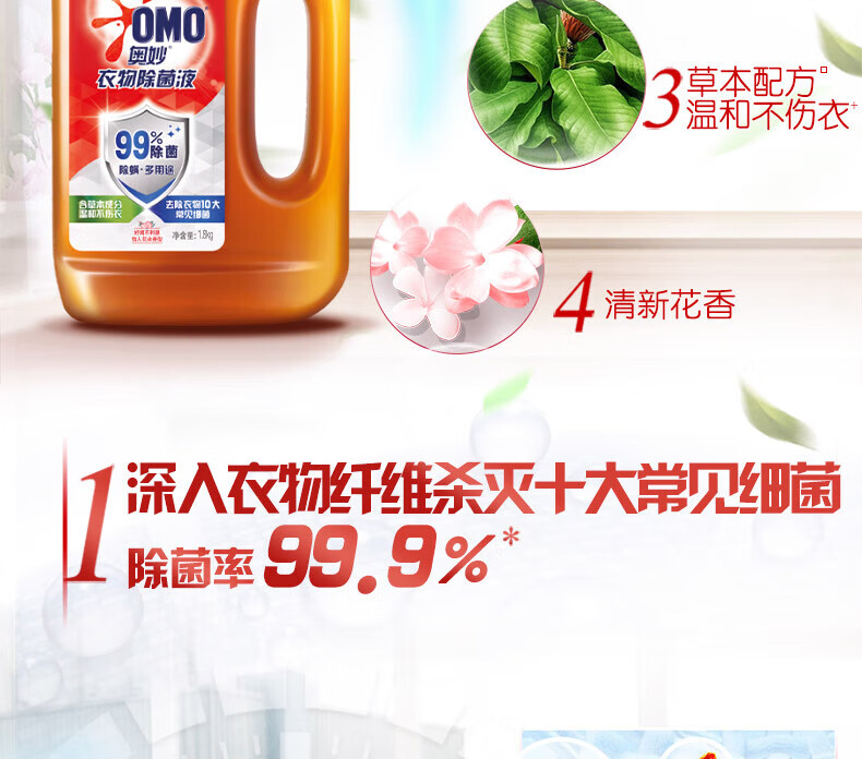 奥妙除菌液衣物 杀菌除螨 孕妇儿童内衣衣物可用 不伤手不刺鼻 花香型1.8kg