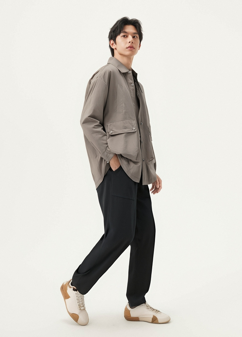 GXG男装 微肌理长袖衬衫暗纹精致休闲衬衣男薄外套 2025秋季新品