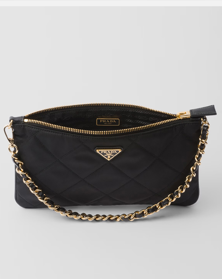 PRADA 普拉达 女士珐琅金属三角形徽标再生尼龙单肩包 黑色 1NI054 2AOS F0002