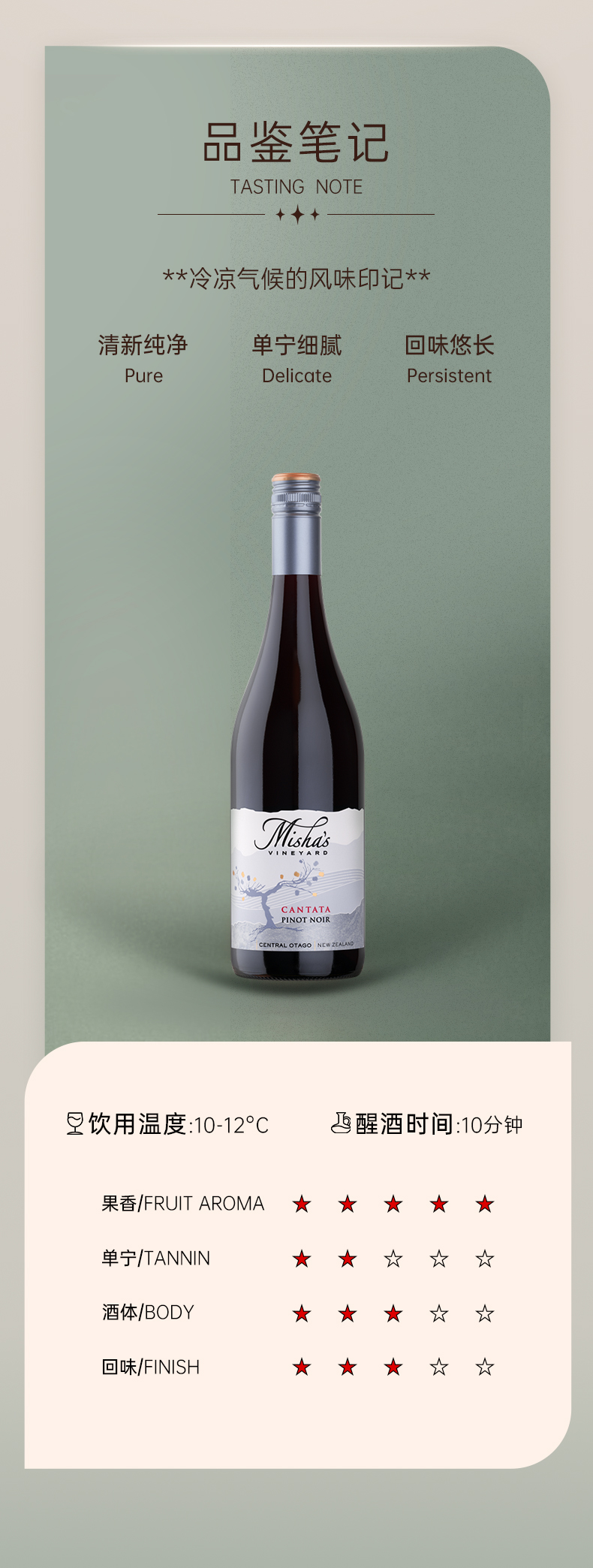 玛莎酒园幻想即兴曲黑皮诺红葡萄酒 2021 Misha’s Vineyard Cantata Pinot Noir