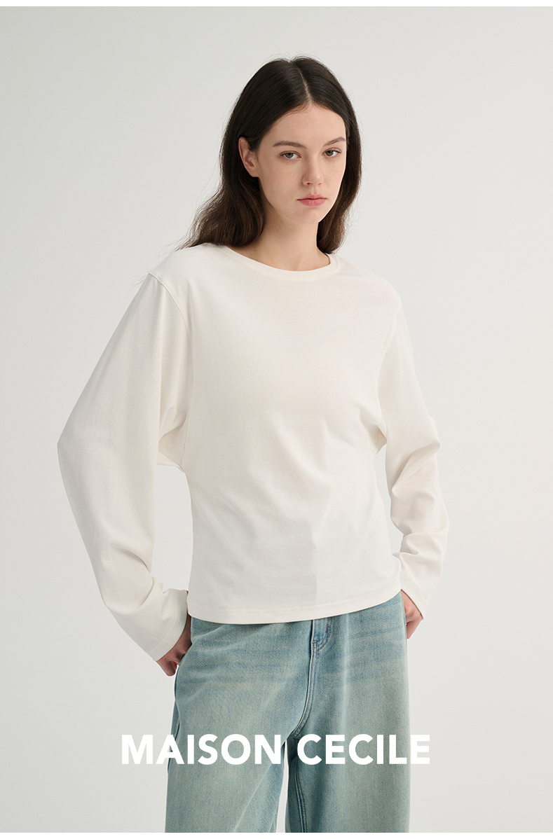 MAISON CECILE 四色/宽松随性设计感圆领蝙蝠袖休闲上衣