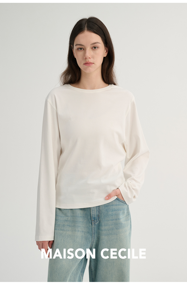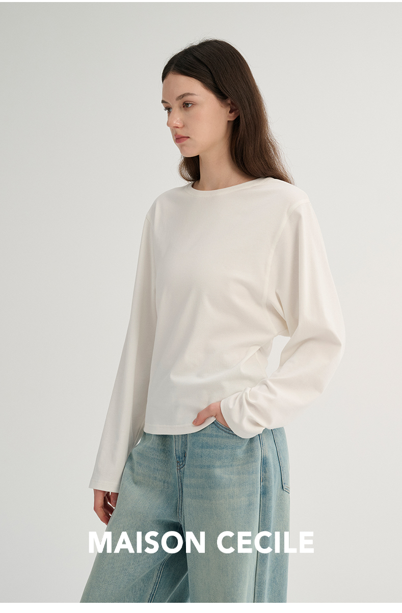 MC三色|基础好穿雪花棉肌理感宽松舒适慵懒落肩T恤MAISON CECILE