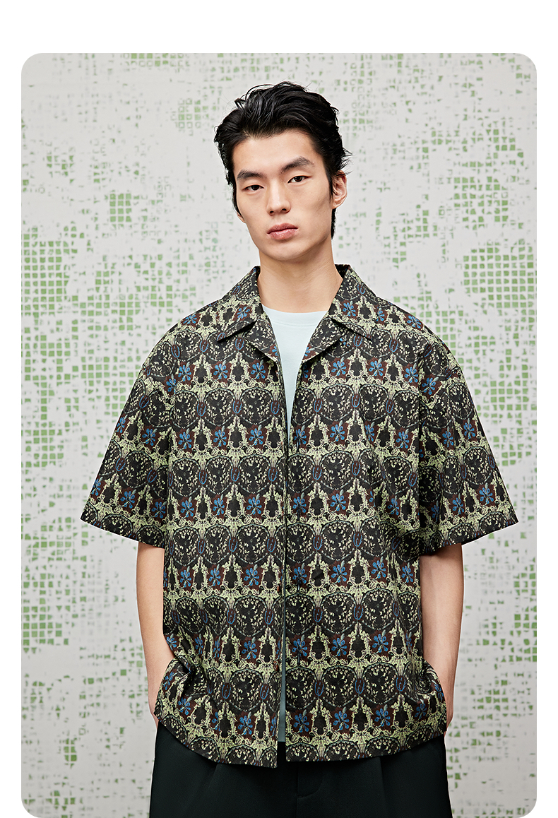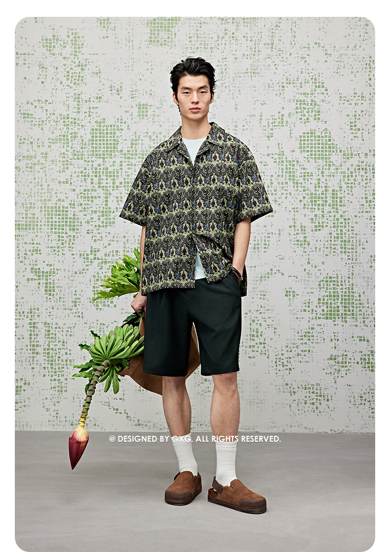 GXG男装 满印水洗短袖衬衫度假风25夏热卖G25X232014