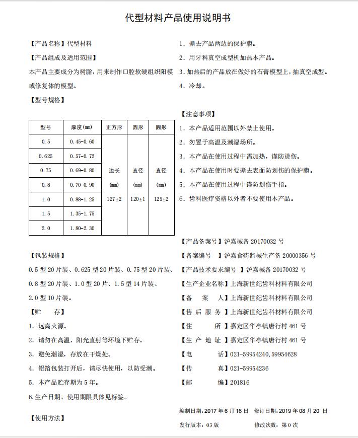 代型材料【新世纪 真空成型片/压膜片/磨片 代型材料 正方形 1.5mm(14片/包) 种植用手术导板 bc】