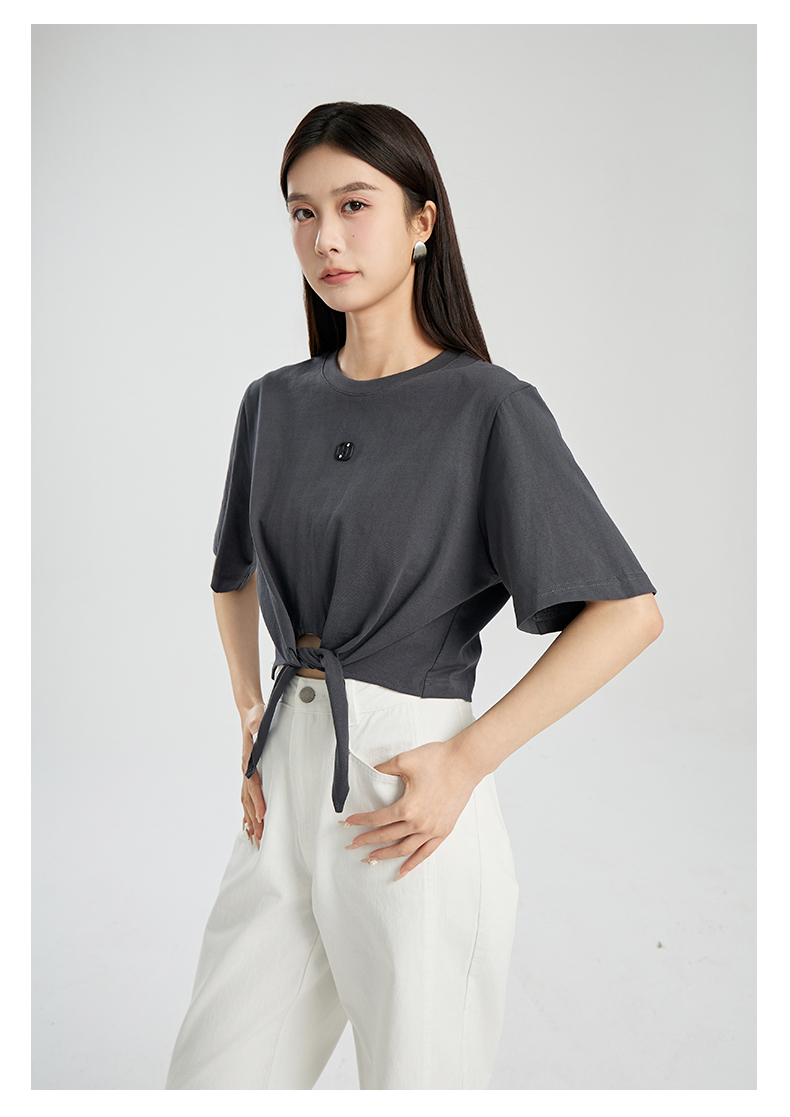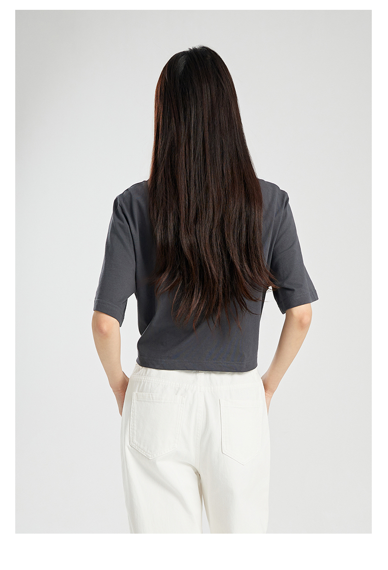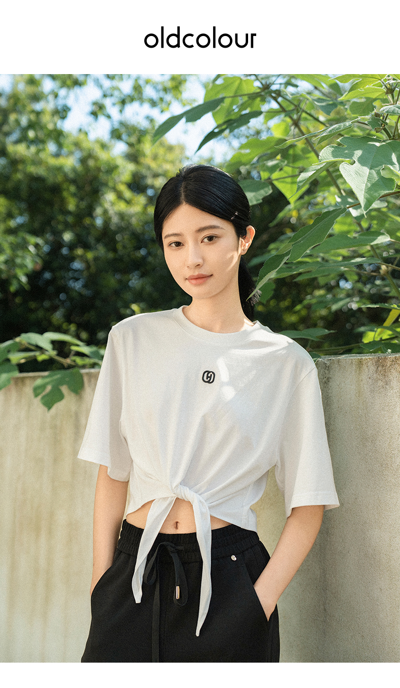 oldcolour夏新款简约休闲宽松设计感短款纯棉短袖T恤女Q240203A1