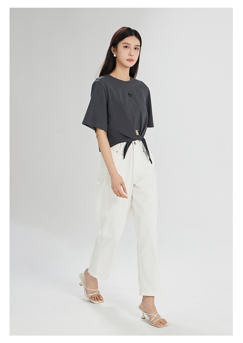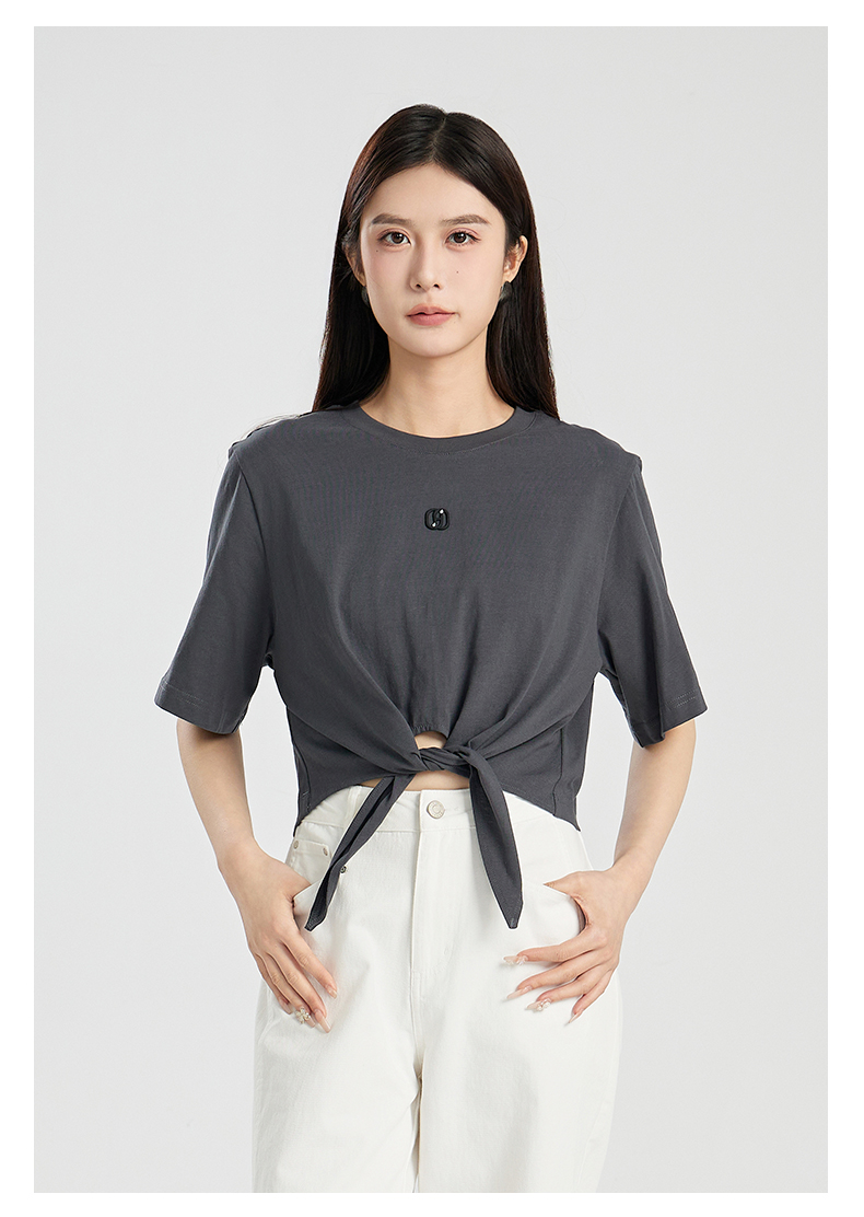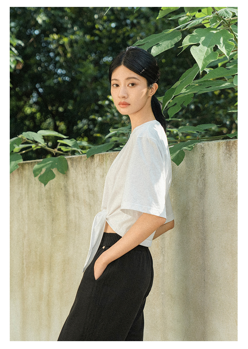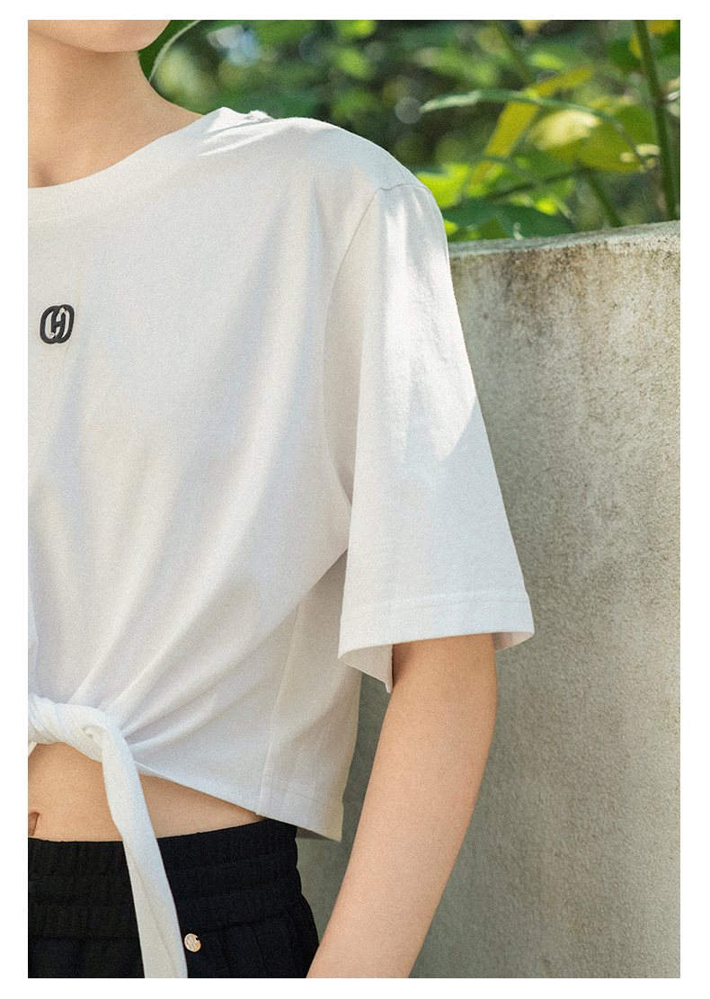 oldcolour夏新款简约休闲宽松设计感短款纯棉短袖T恤女Q240203A1