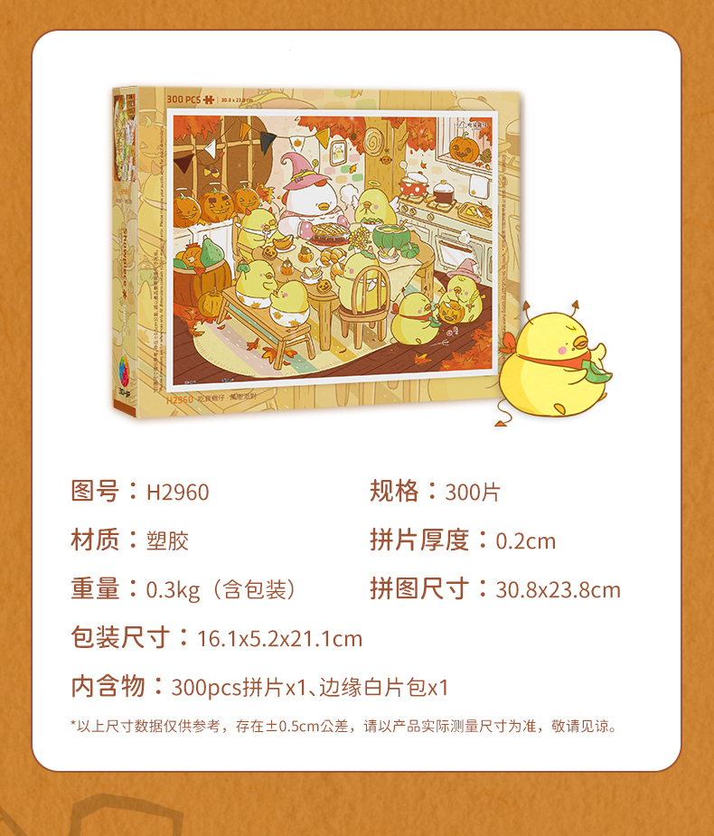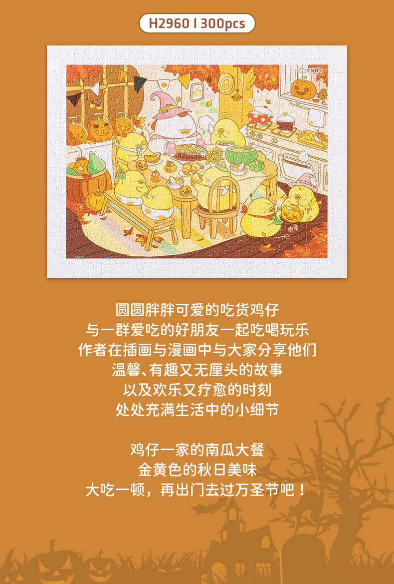 【折扣商品 不退不换】300片平面拼图 塑料拼图 万圣节节庆款H2960 吃货鸡仔-万圣派对