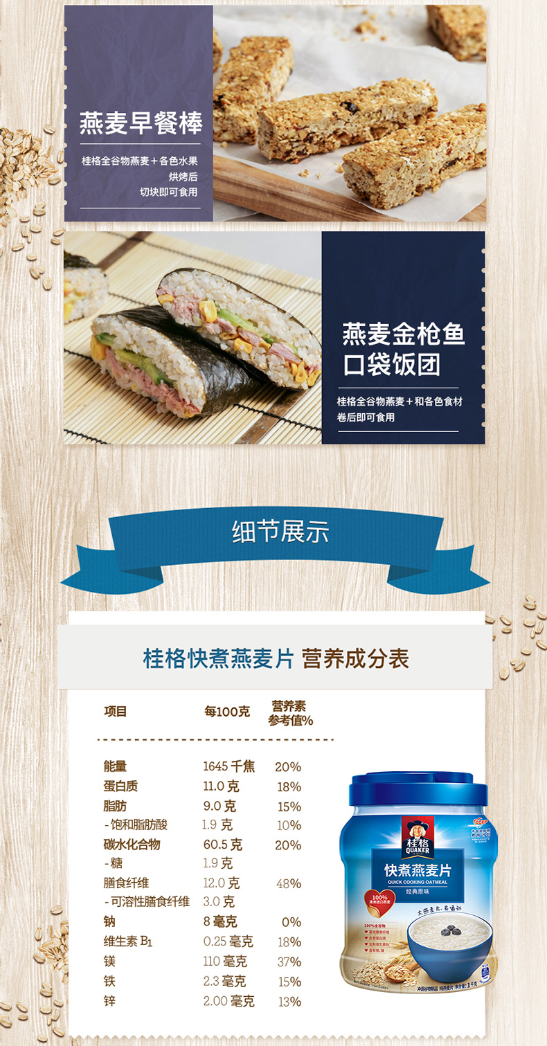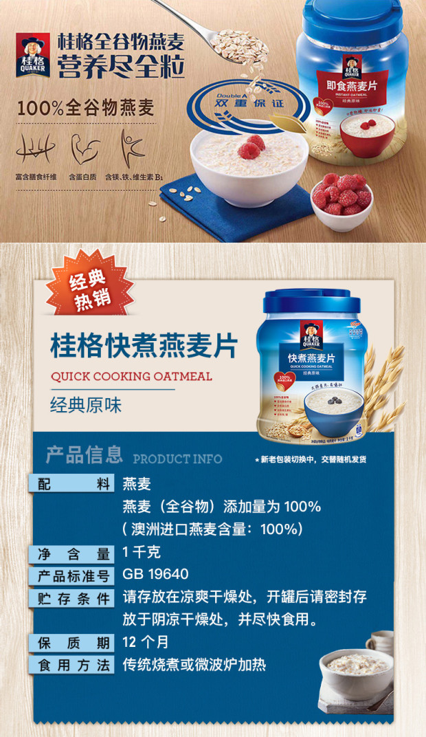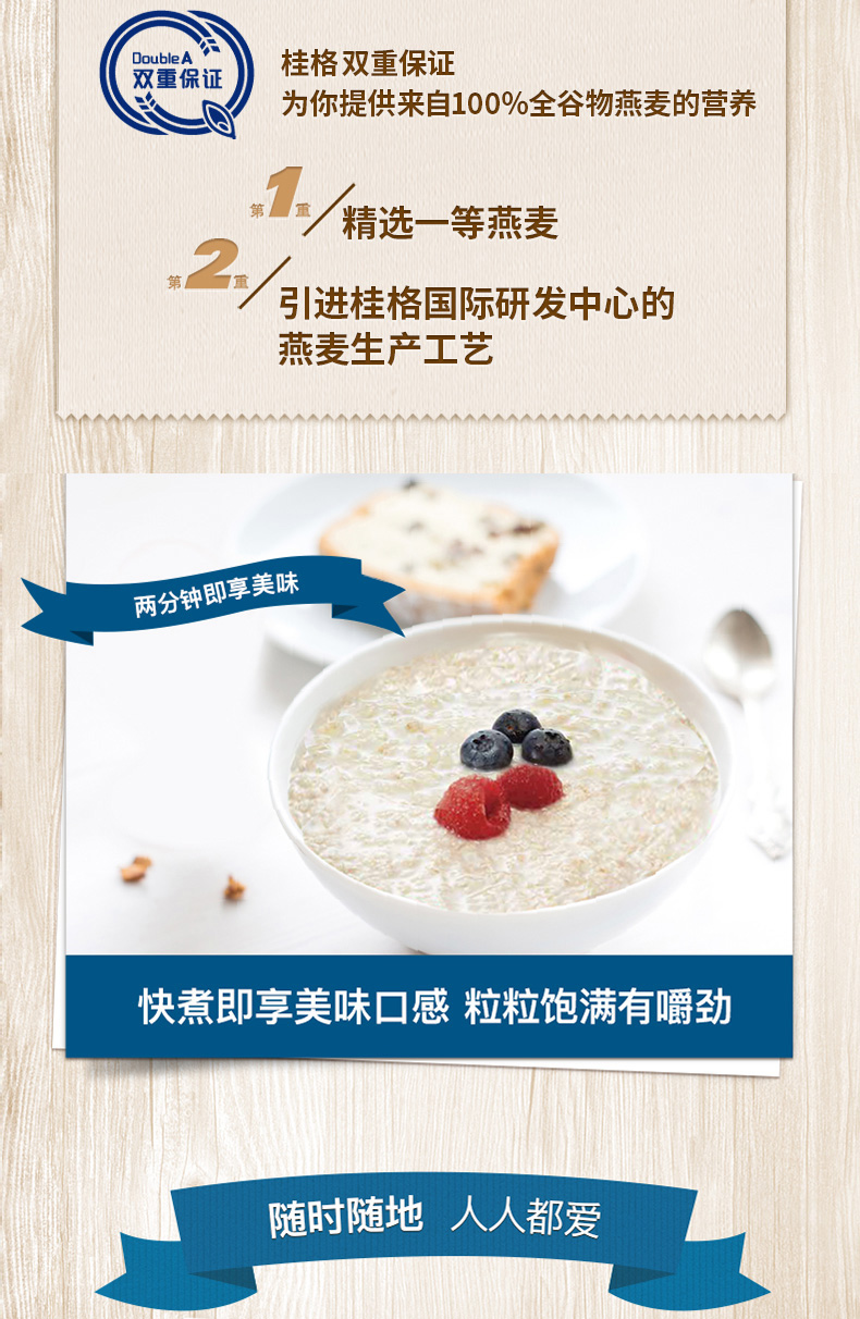 【106道检测工序】桂格 快煮燕麦片 谷物 冲饮1000g/罐 原味 煮食 无蔗糖 营养麦片 百年品牌