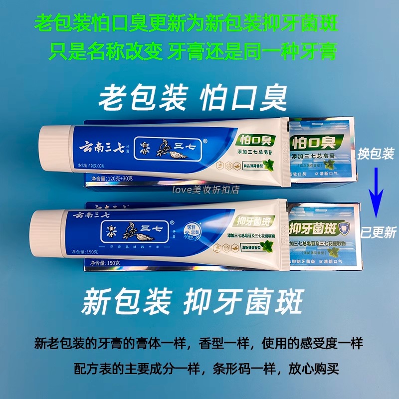 【分仓直发包邮】云南三七抑牙菌斑牙膏(尚品薄荷)120g+30g