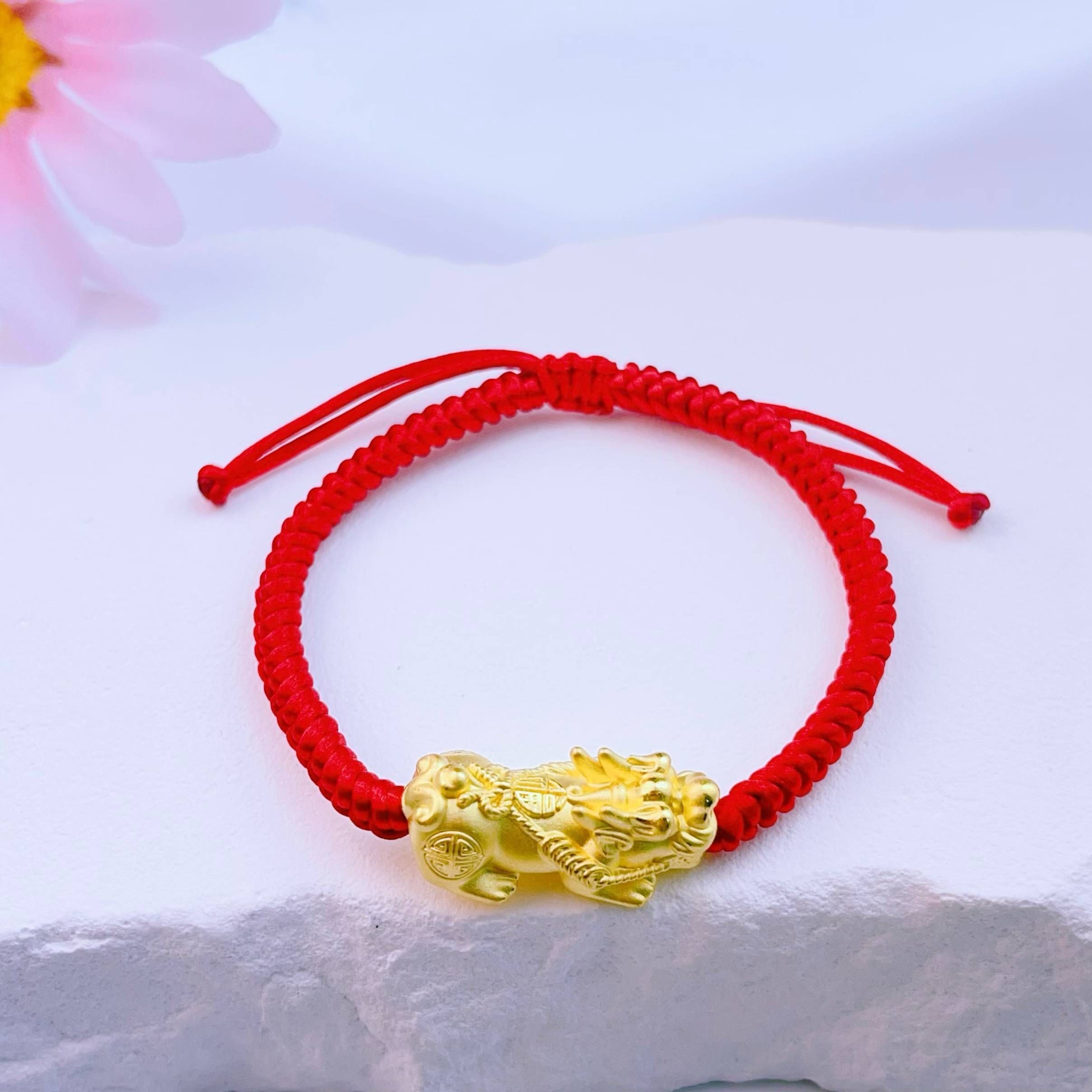 【限时7.5折】【定价黄金】足金 #招财纳福 3D硬金招财纳福貔貅红绳调节成品手串(AA3DSC00350)(预售产品下单后不退款不退货不换货不补差价)