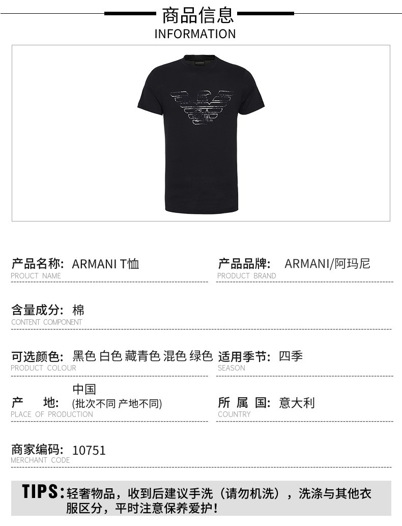EMPORIO ARMANI 阿玛尼 时尚潮流男士全棉短袖T恤 10751