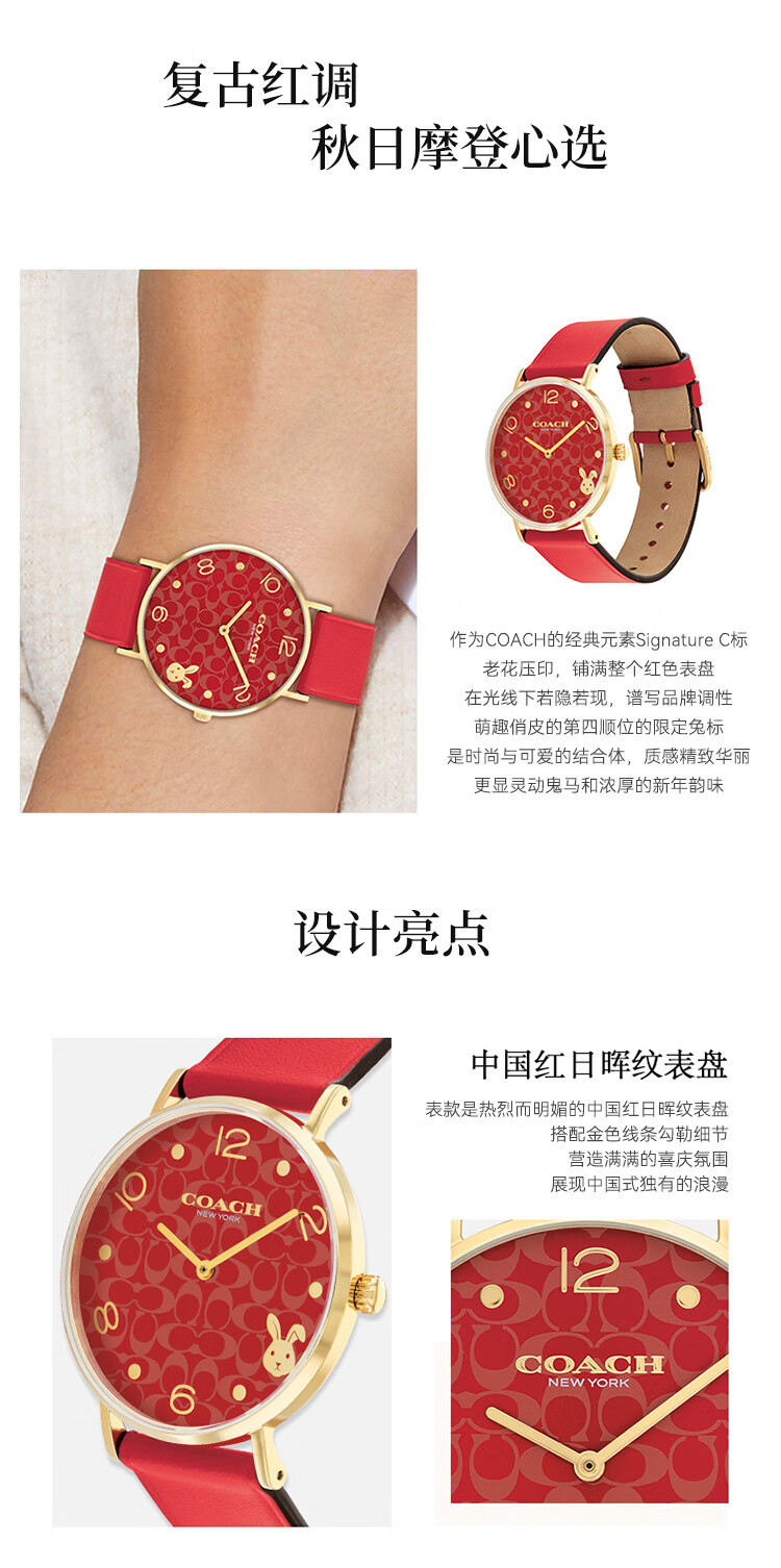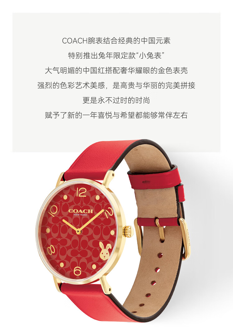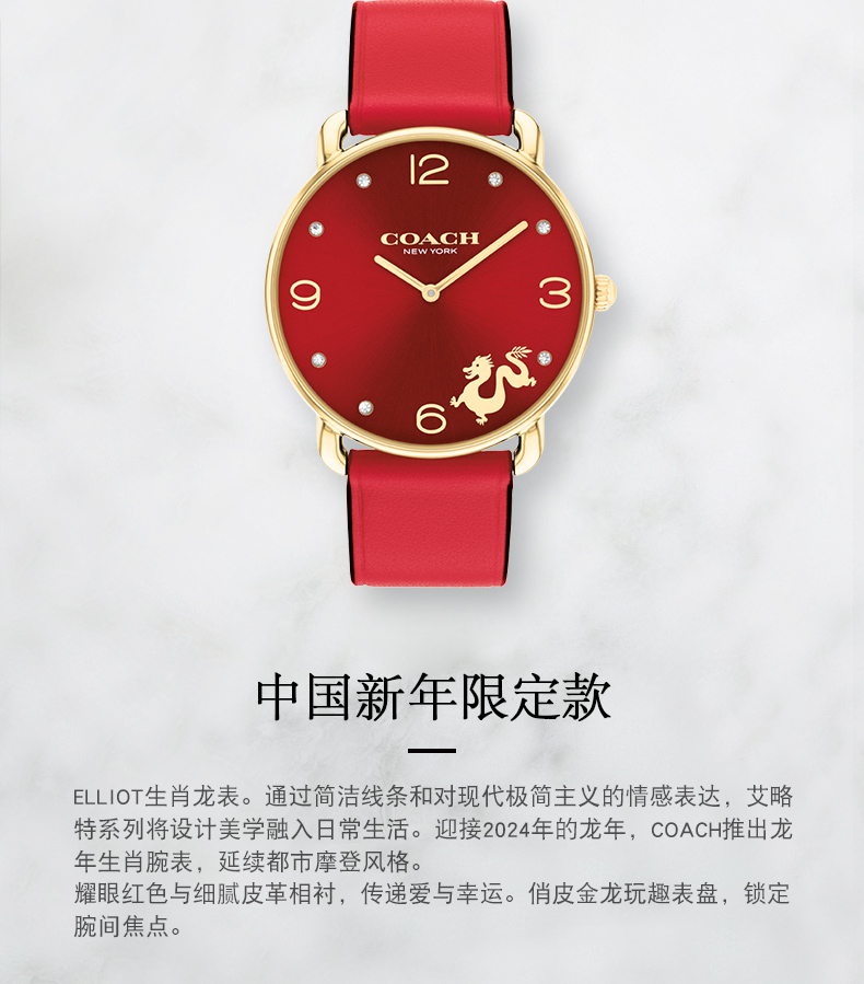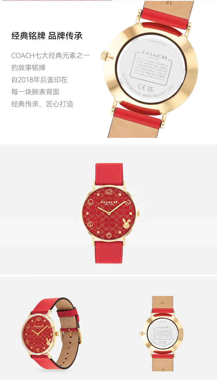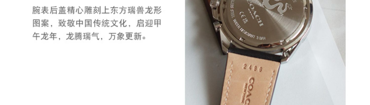 【情人节礼物】【下单送玫瑰金钛钢手镯】明星同款 COACH 蔻驰 中国龙年生肖限定手表 简约皮带石英女表