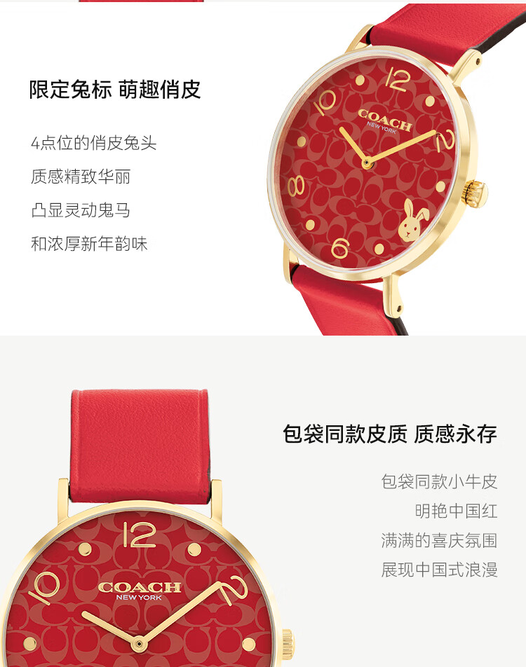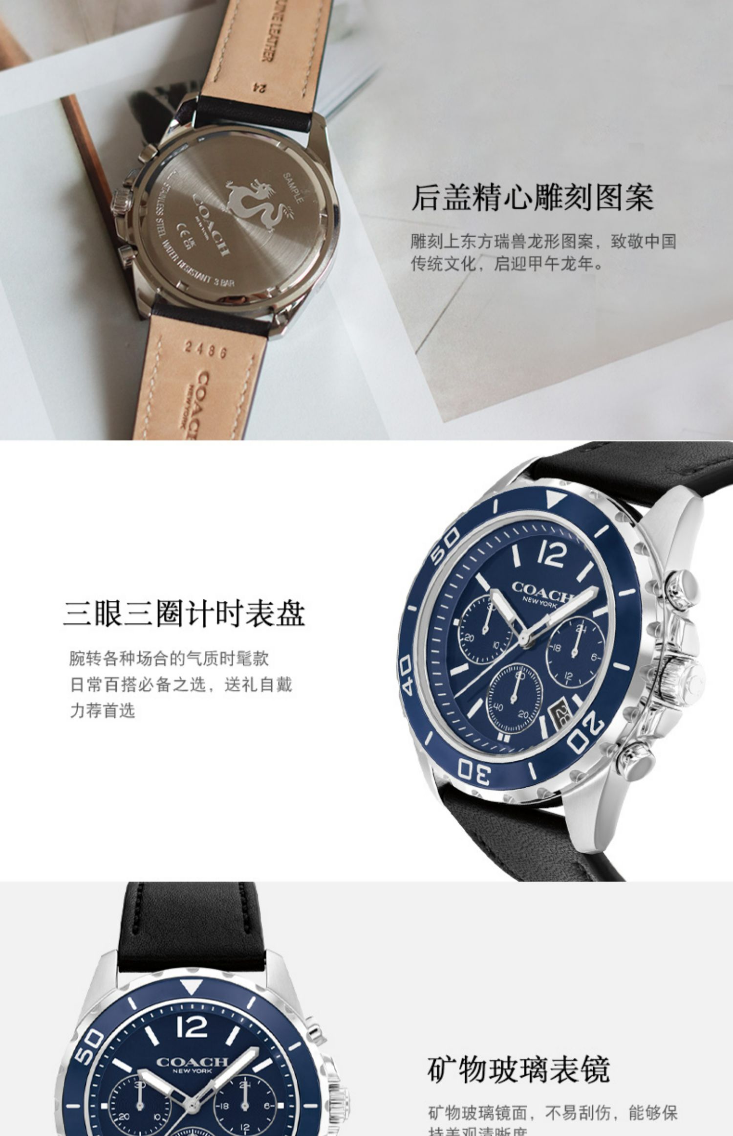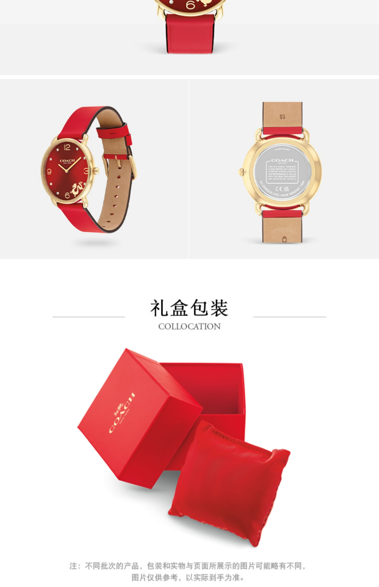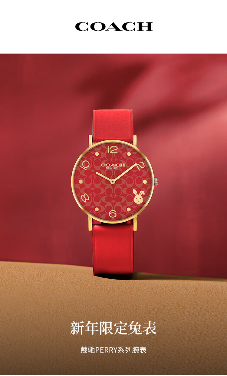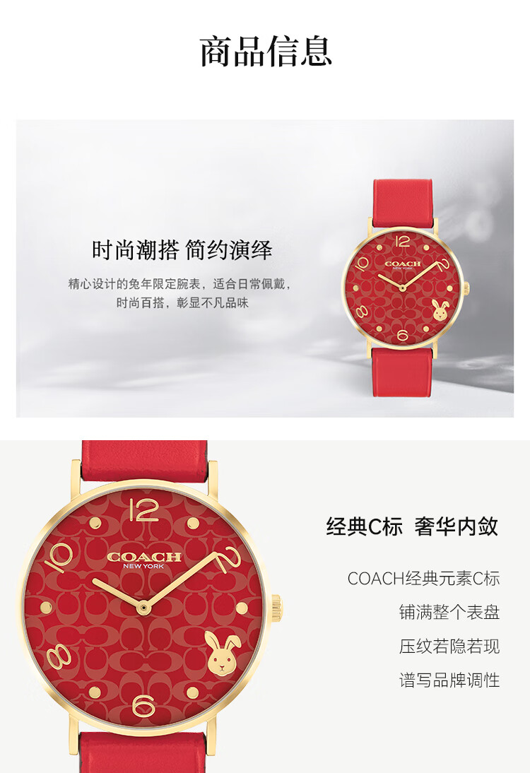 【情人节礼物】【下单送玫瑰金钛钢手镯】明星同款 COACH 蔻驰 中国龙年生肖限定手表 简约皮带石英女表