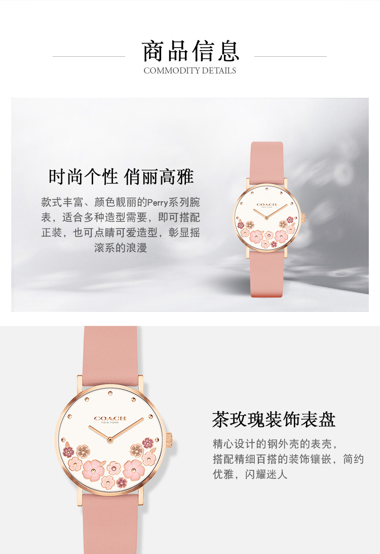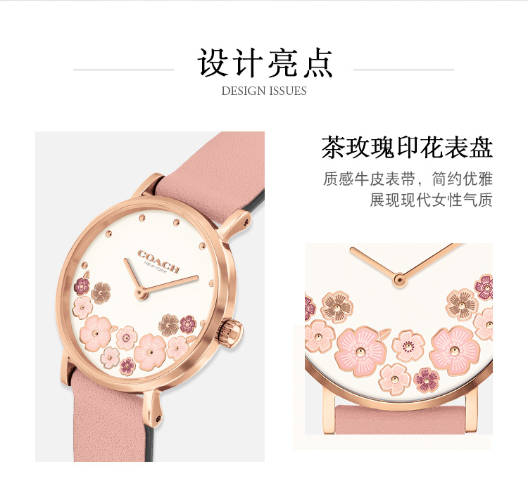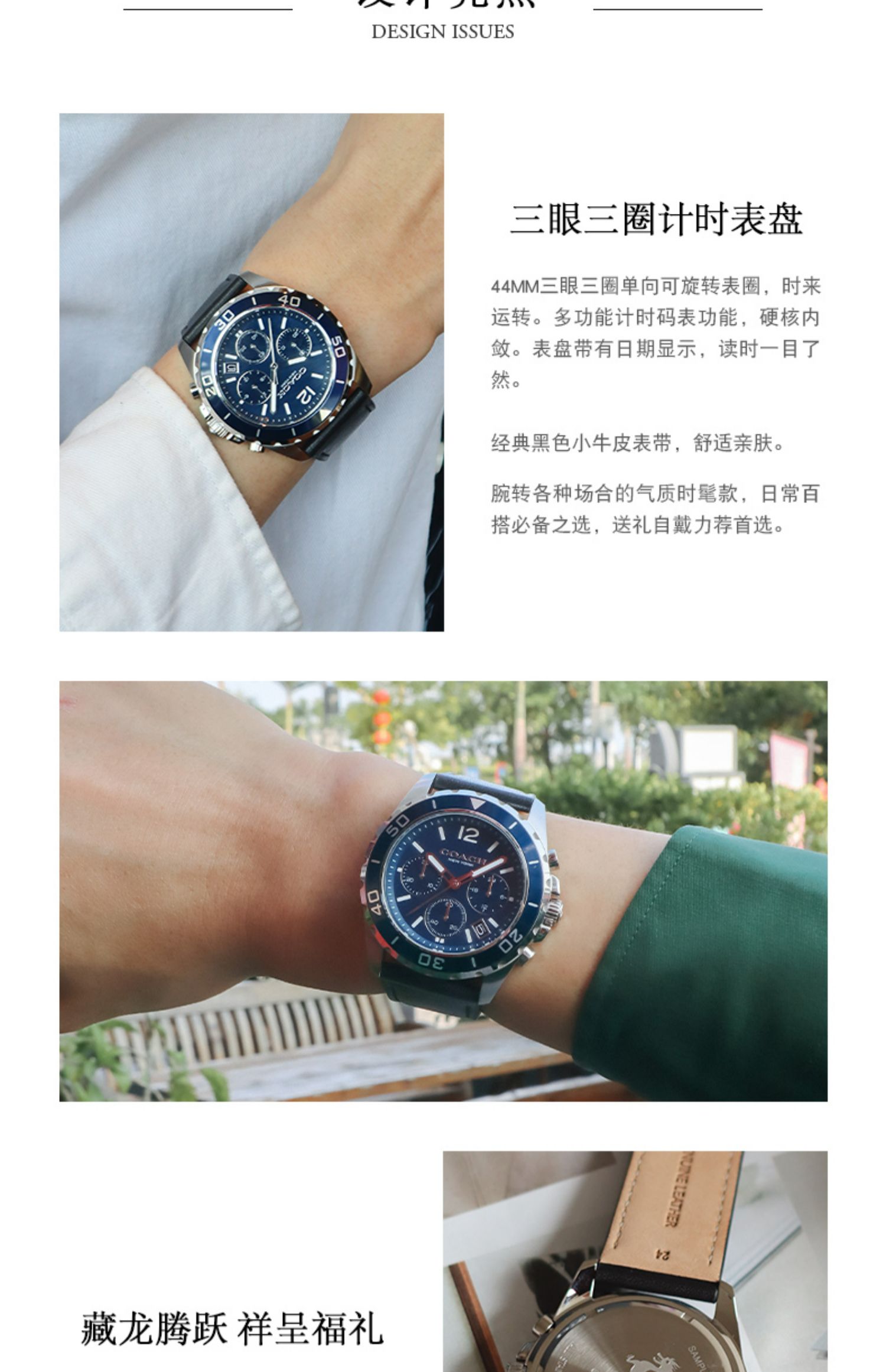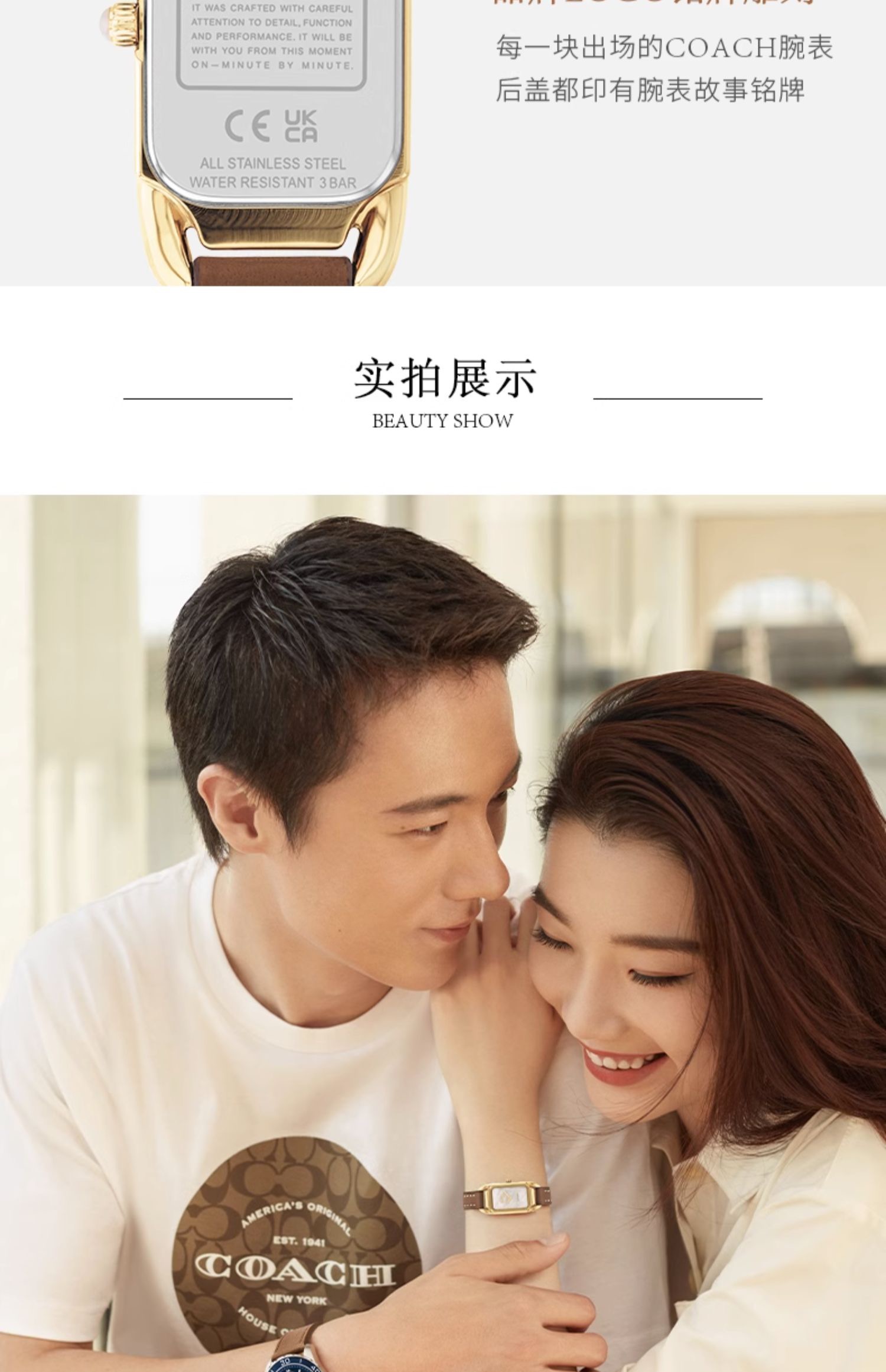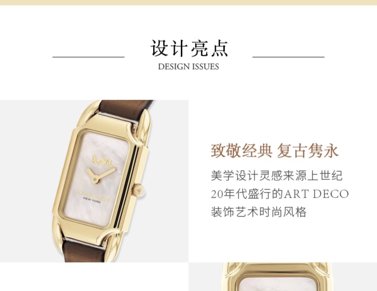 【情人节礼物】【下单送玫瑰金钛钢手镯】明星同款 COACH 蔻驰 中国龙年生肖限定手表 简约皮带石英女表