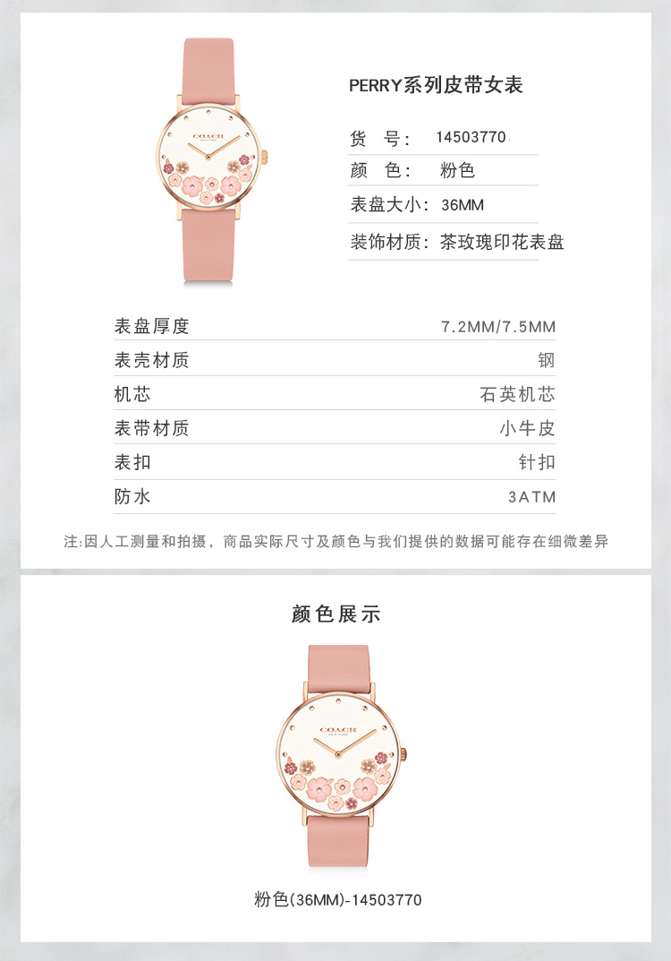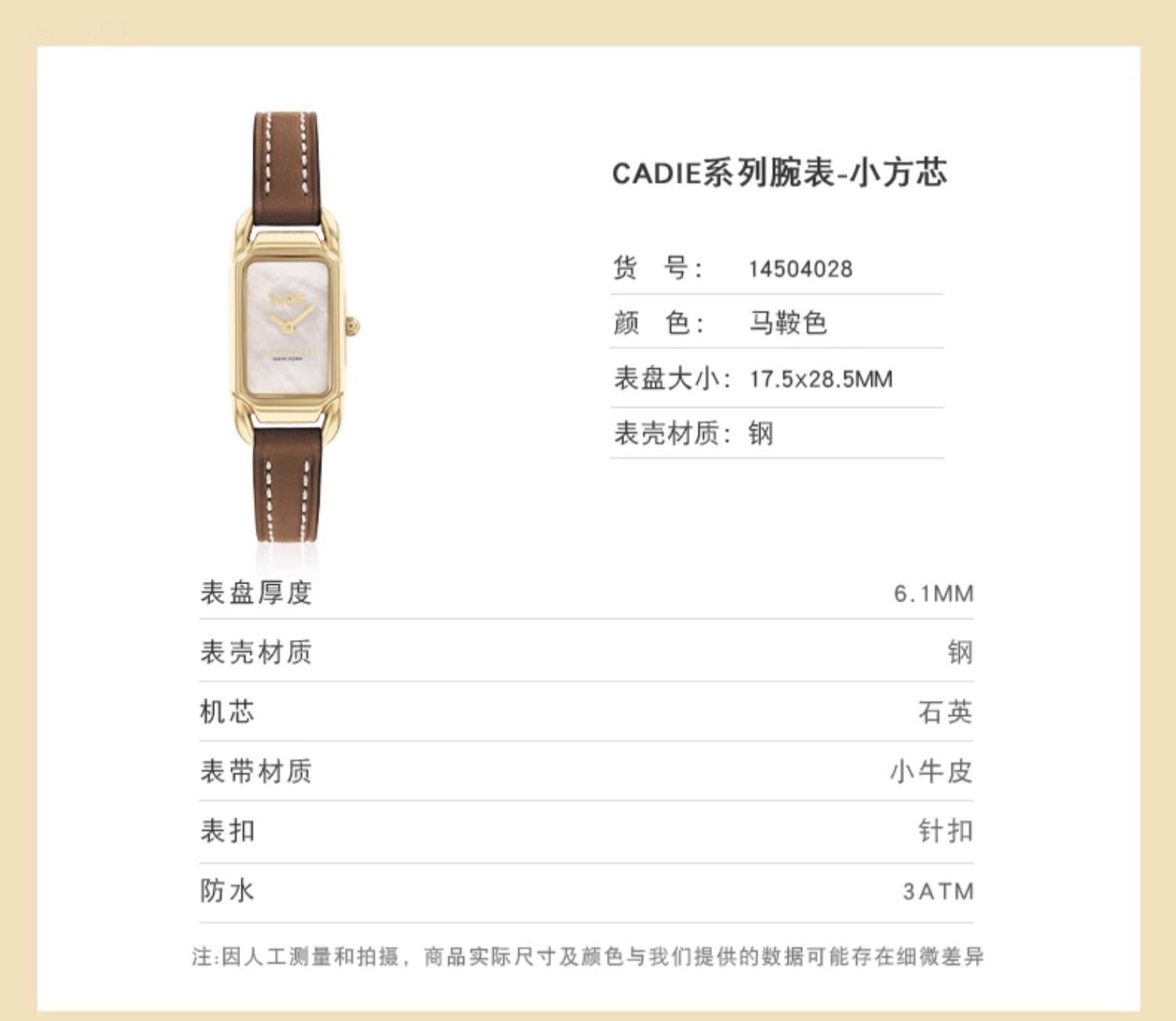 4、试戴前,产品原有的保护膜请勿揭掉,以免影响退货,购买皮表带的顾客,在不确定是否喜欢前请勿佩戴以及将表针插入表带的表孔中,因皮表带佩戴后产生痕迹是不能进行退货的,敬请谅解。