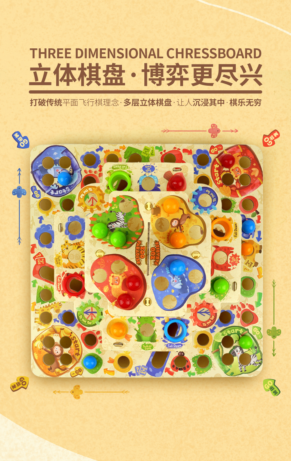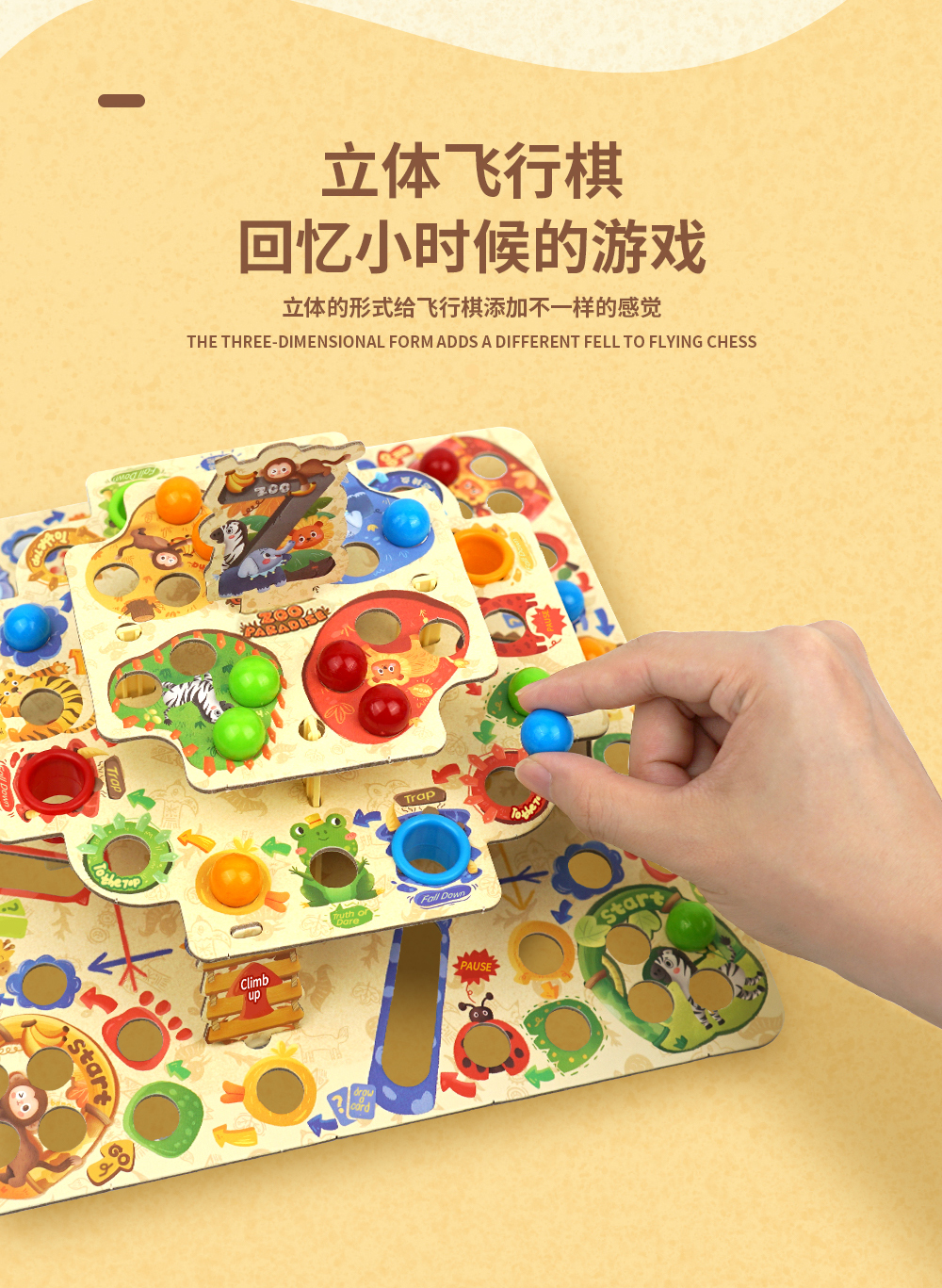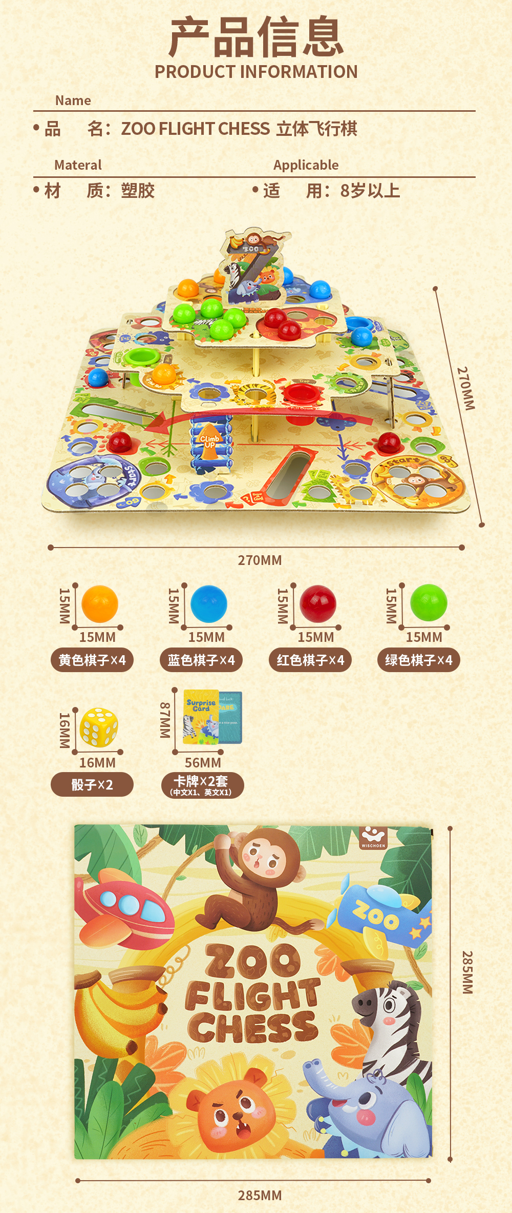 智蔻动物乐园立体飞行棋中英双语儿童益智桌游新款礼盒装亲子互动桌面游戏