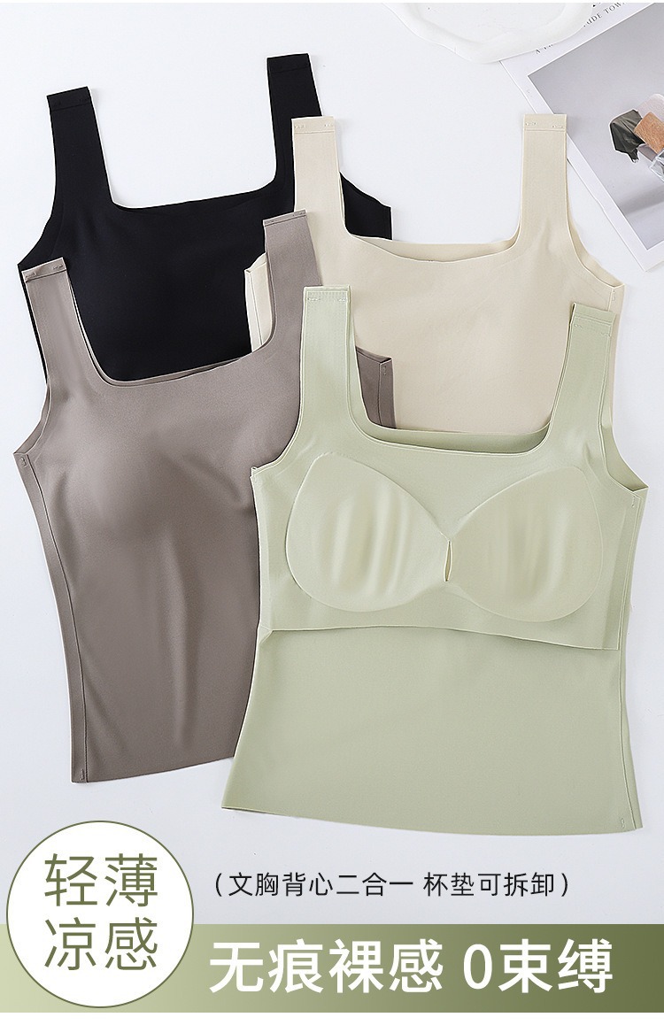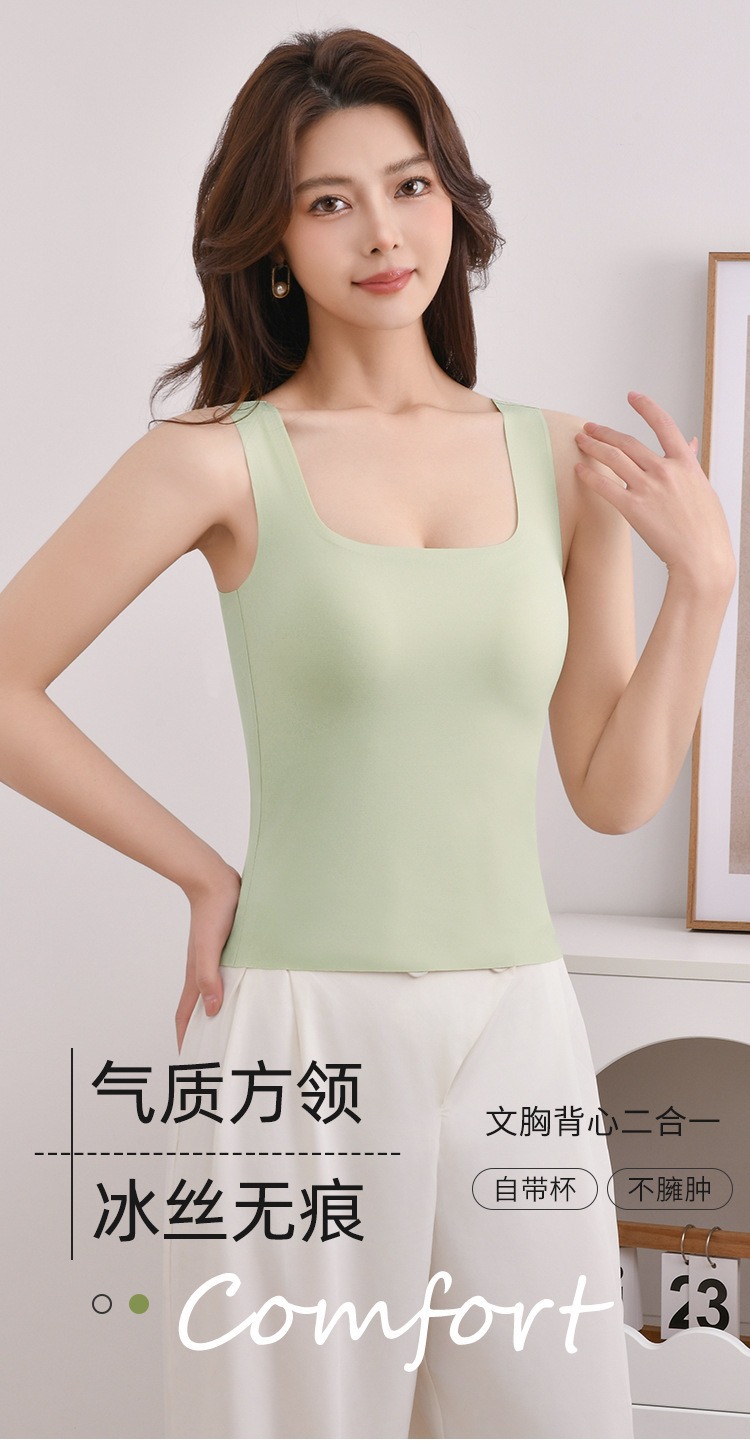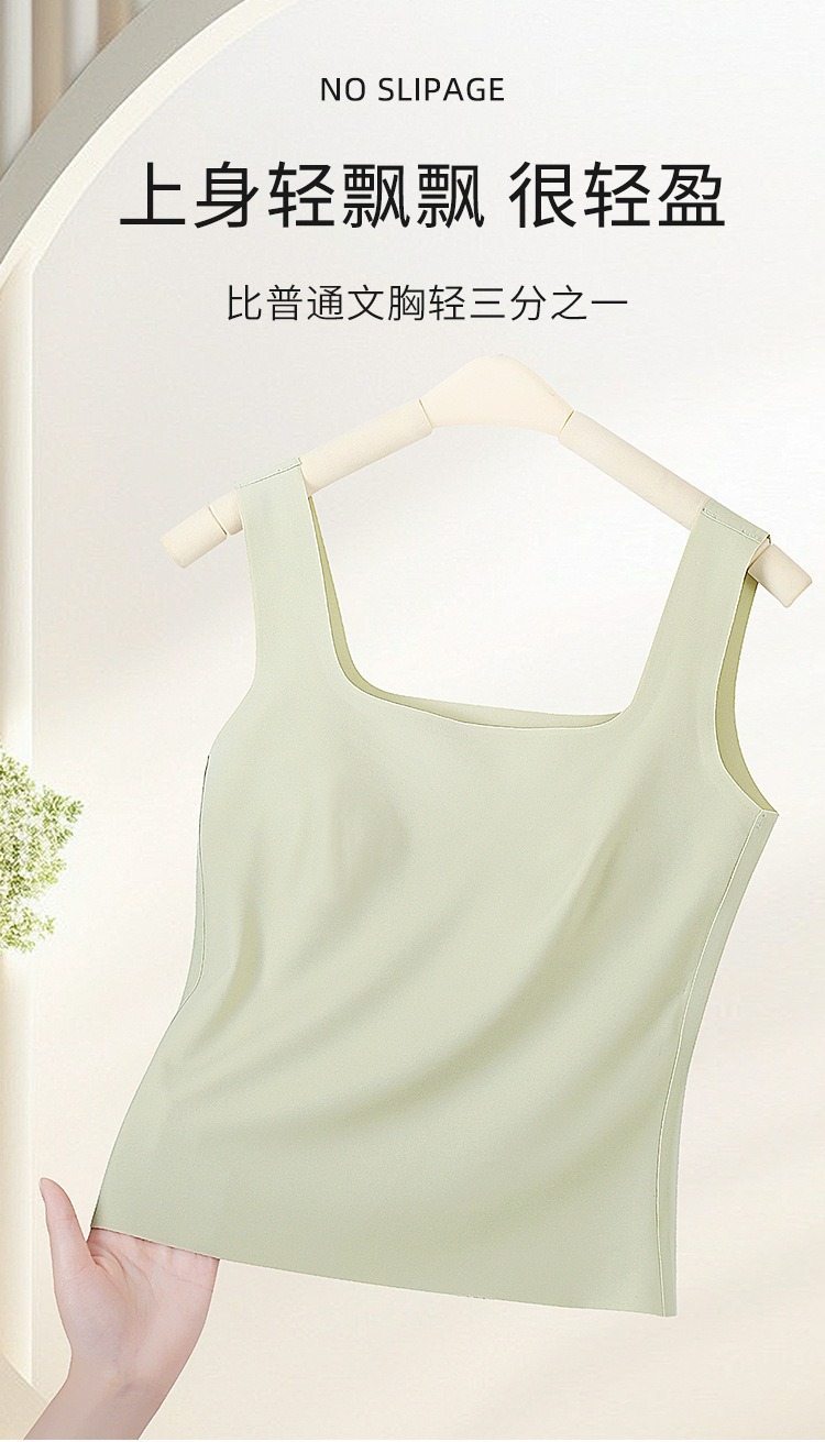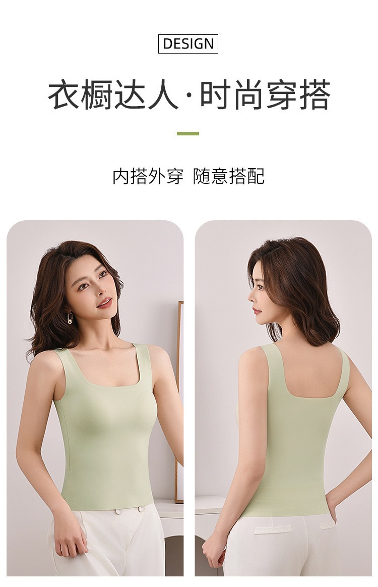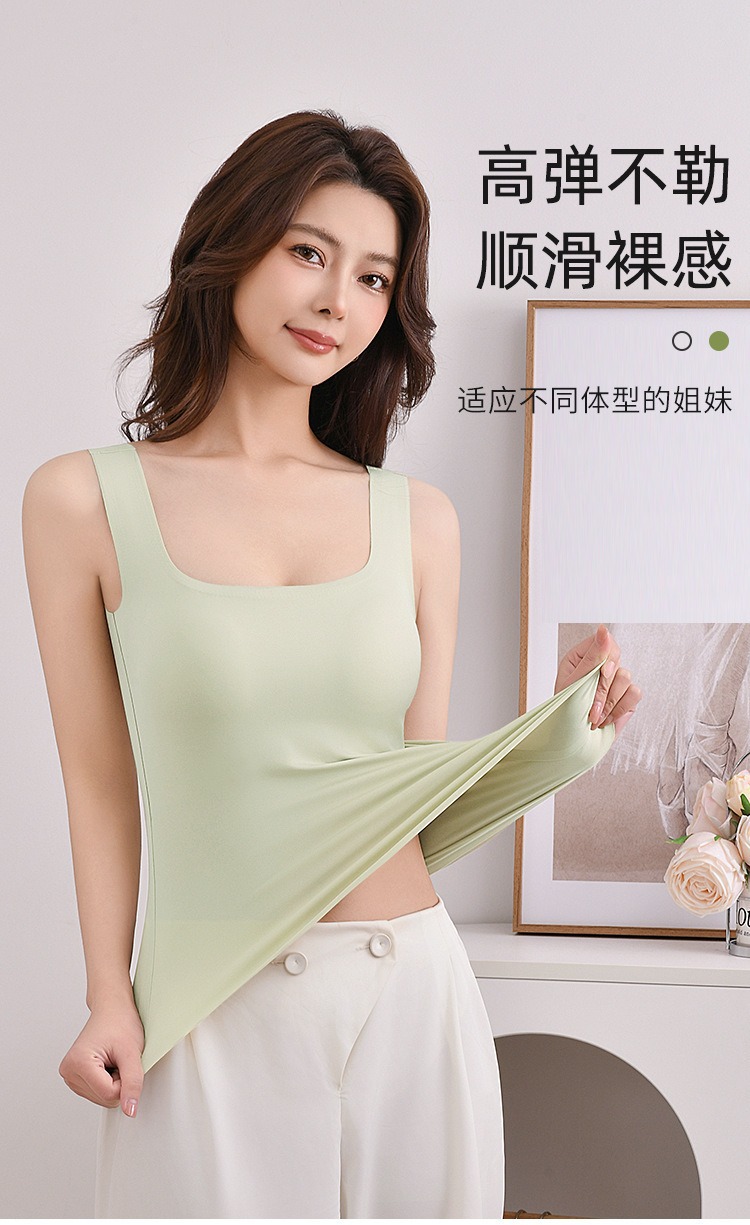 【夏新款宽肩背心】冰丝无痕可拆卸乳胶杯垫 长款加大码内衣打底外穿