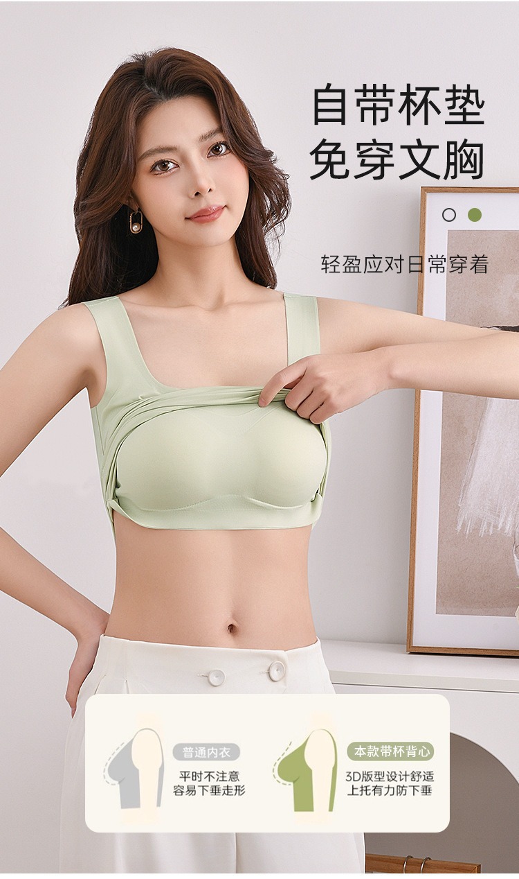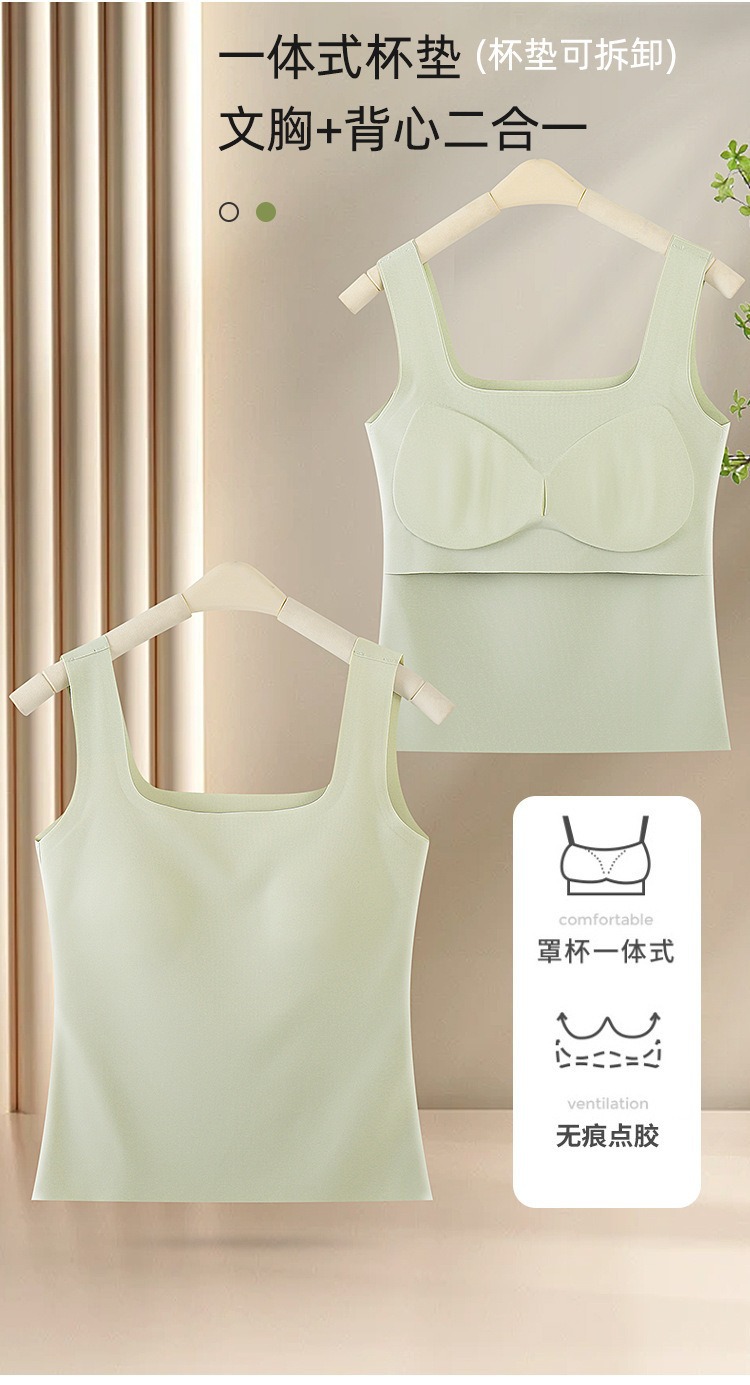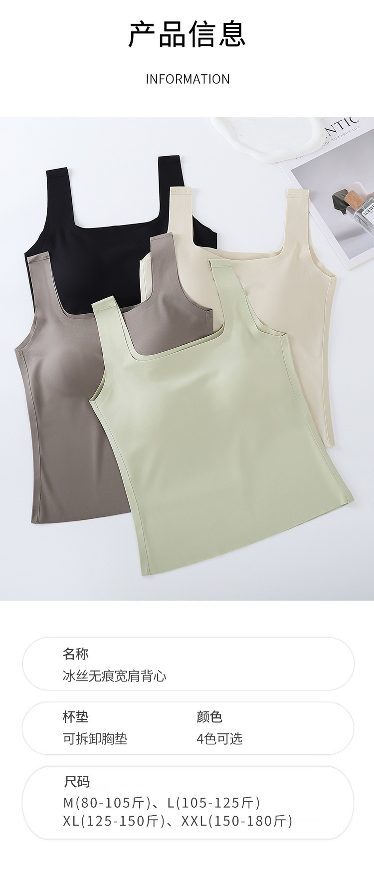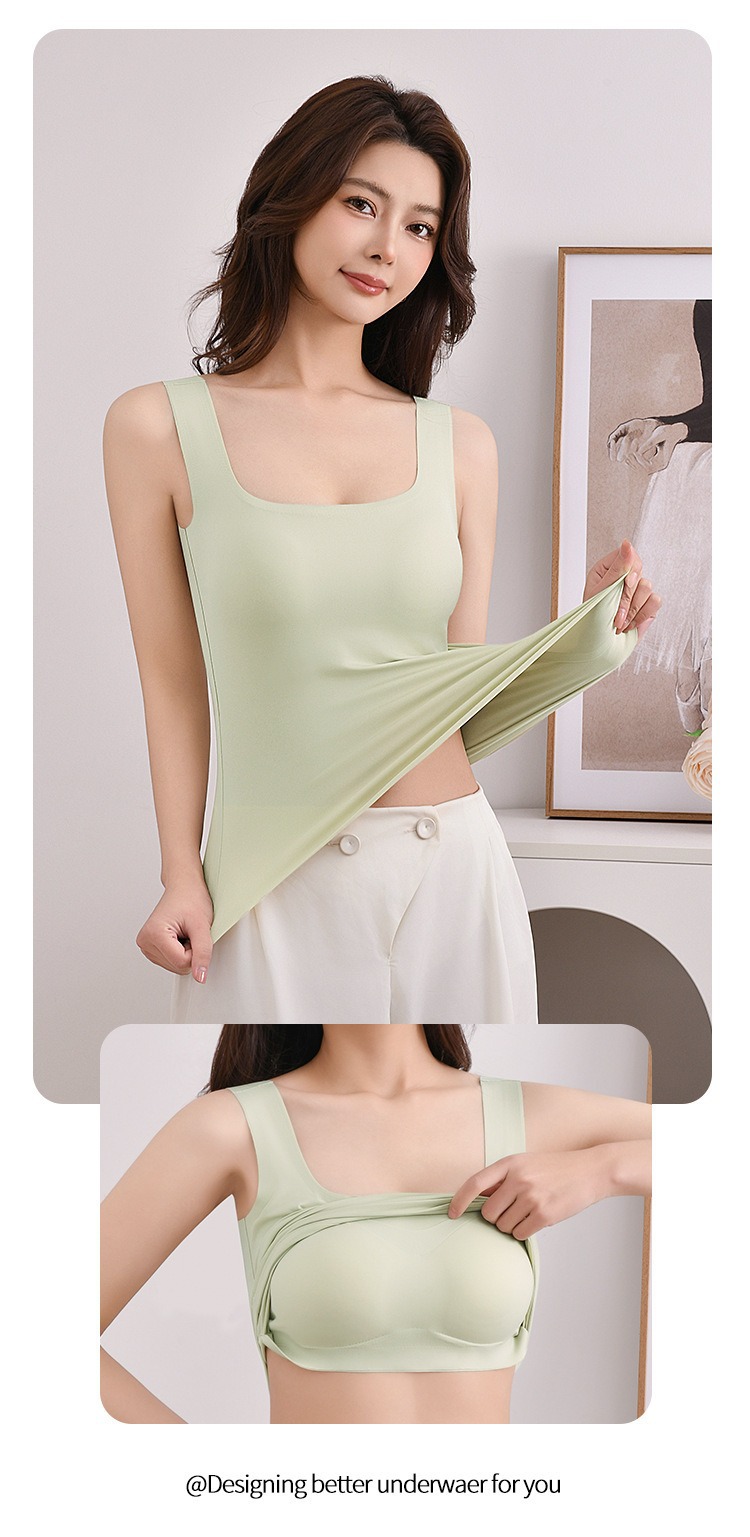 【夏新款宽肩背心】冰丝无痕可拆卸乳胶杯垫 长款加大码内衣打底外穿