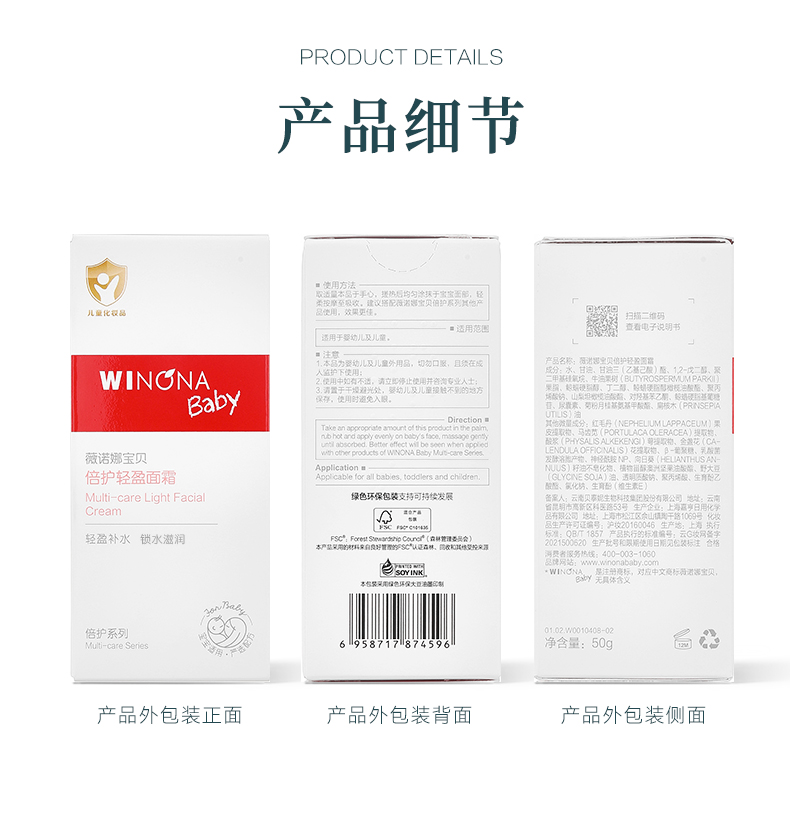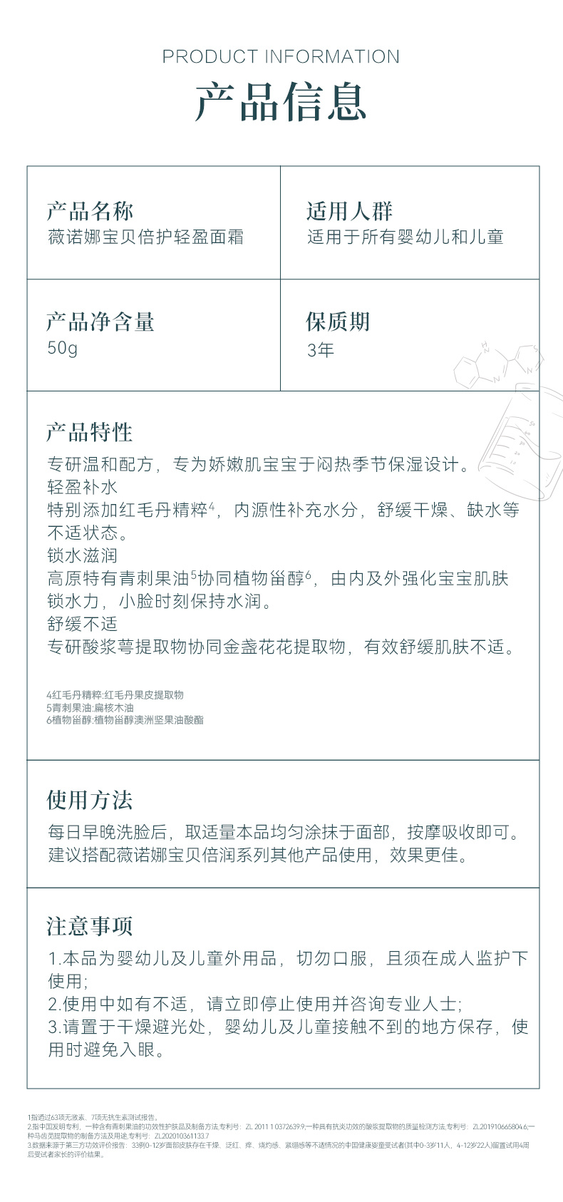 【品牌直供】50g薇诺娜宝贝倍护轻盈面霜买一赠一