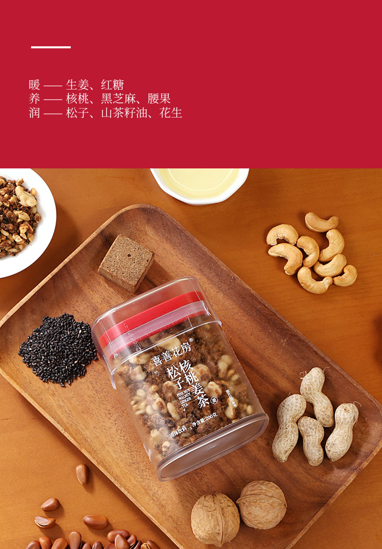 喜善花房 松子核桃姜茶 滋补 暖宫 煮泡牛奶 泡茶 直接吃均可