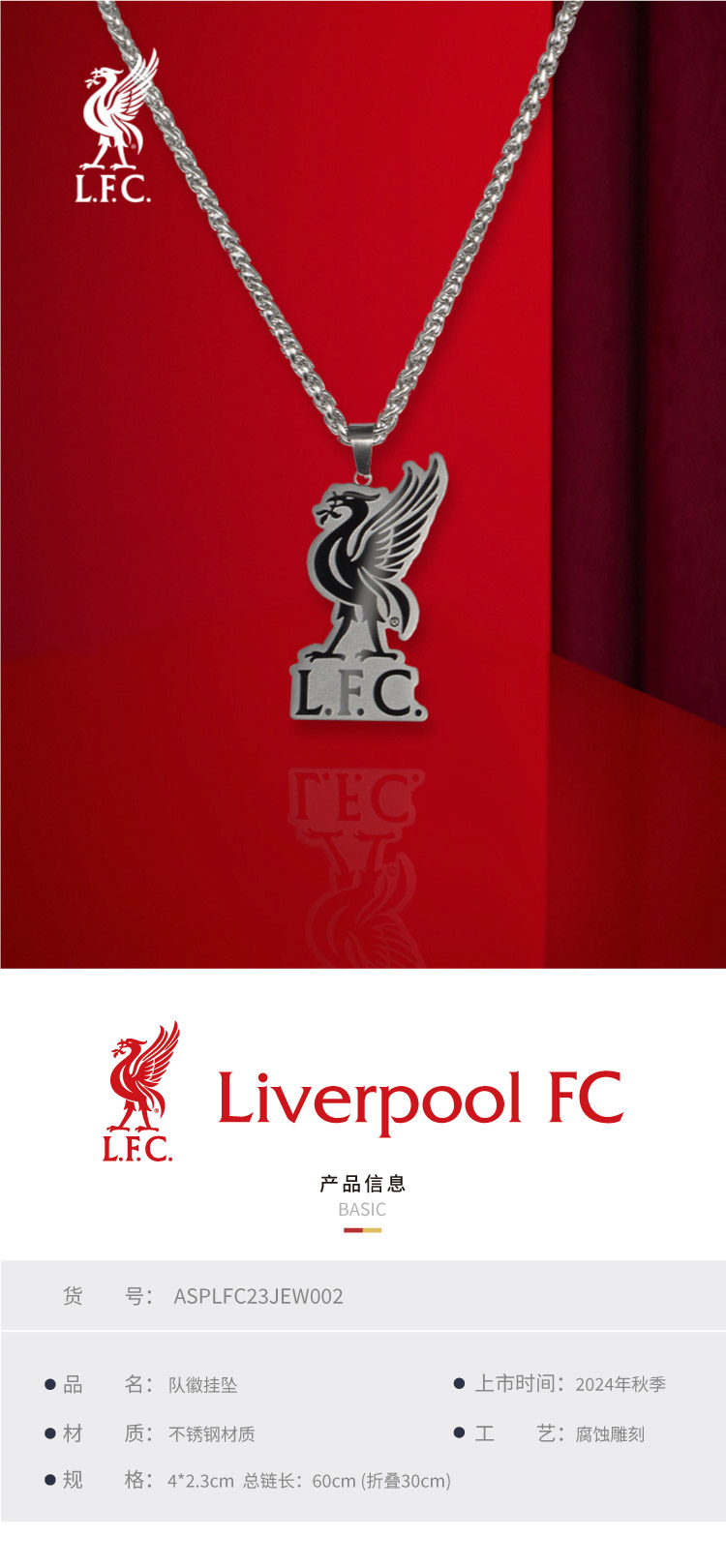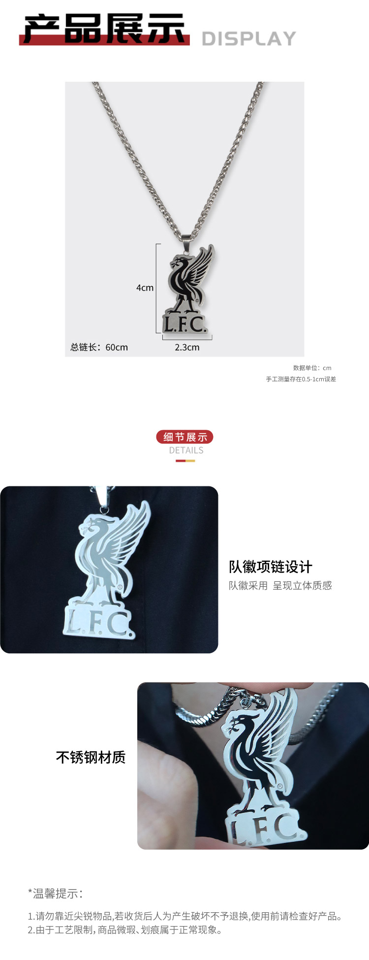 【官方正版】利物浦俱乐部 | 队徽立体雕刻钛钢项链吊坠球迷周边