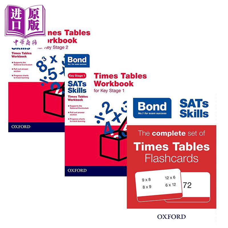 【中商原版】英国牛津 Bond 11+教辅 SATs 小升初技能训练 数学乘法表练习+闪卡 套装3册 KS1-KS2