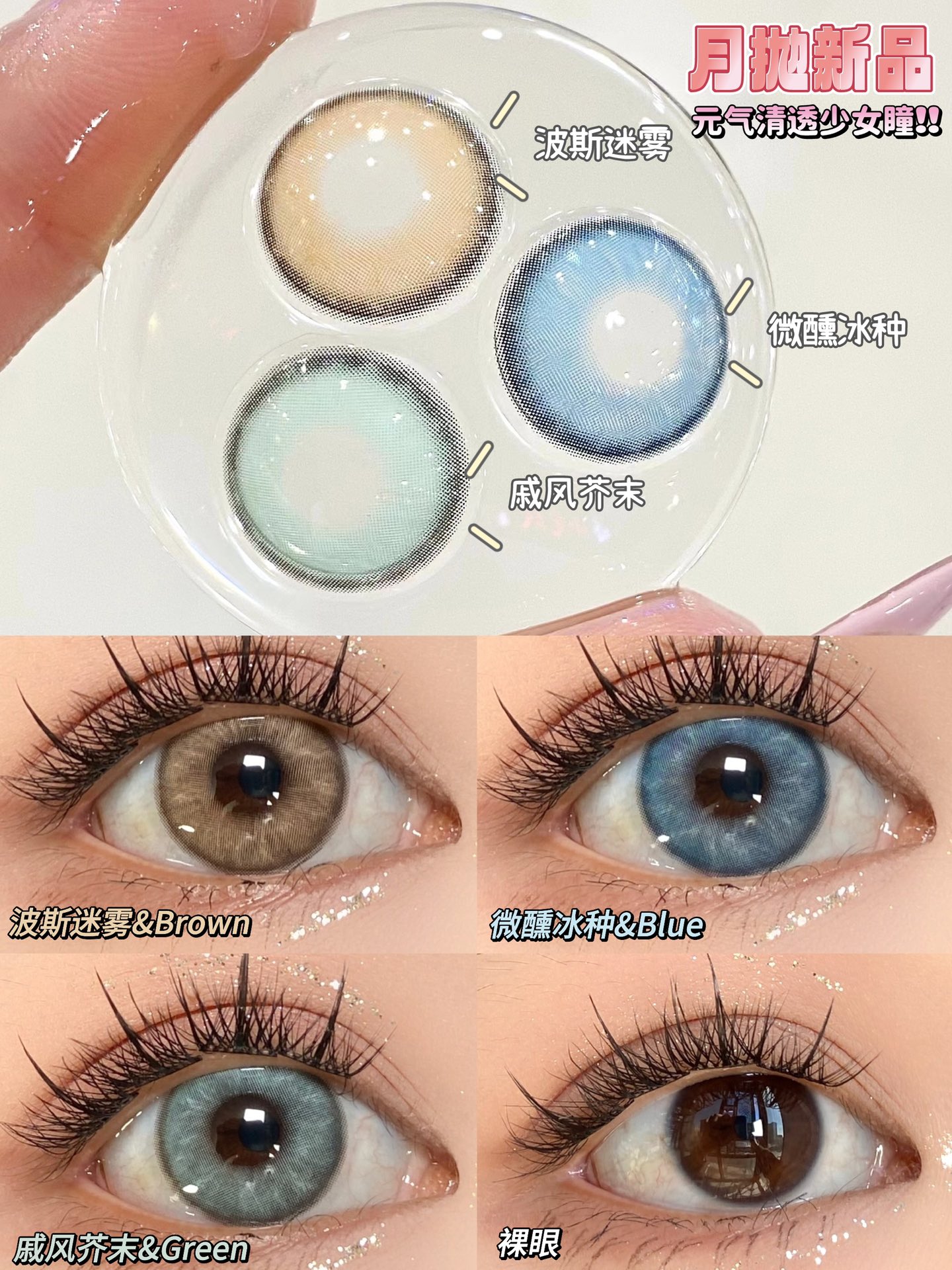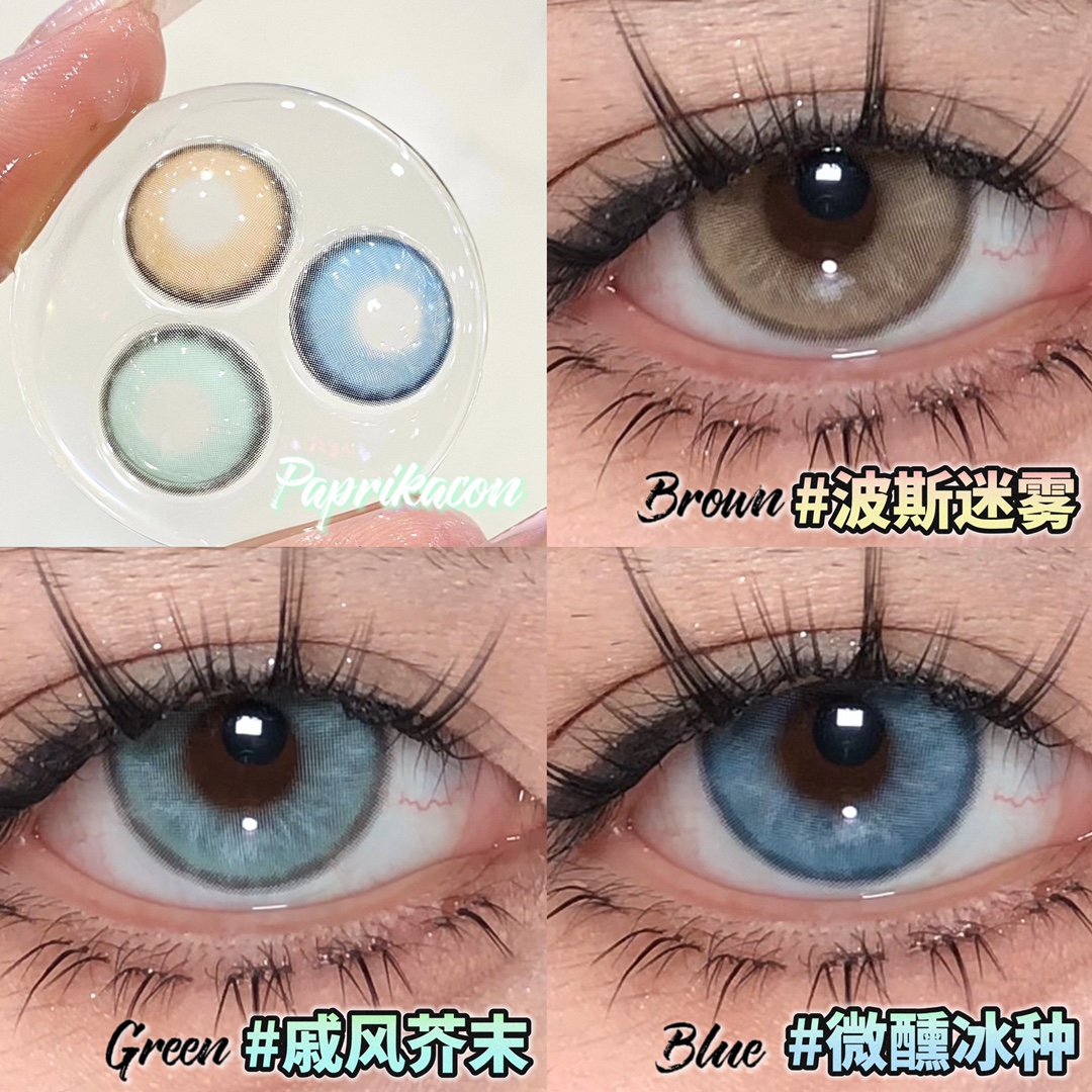 paprikacon月抛 波斯迷雾/戚风芥末/微醺冰种 14.5mm 非离子 棕蓝绿