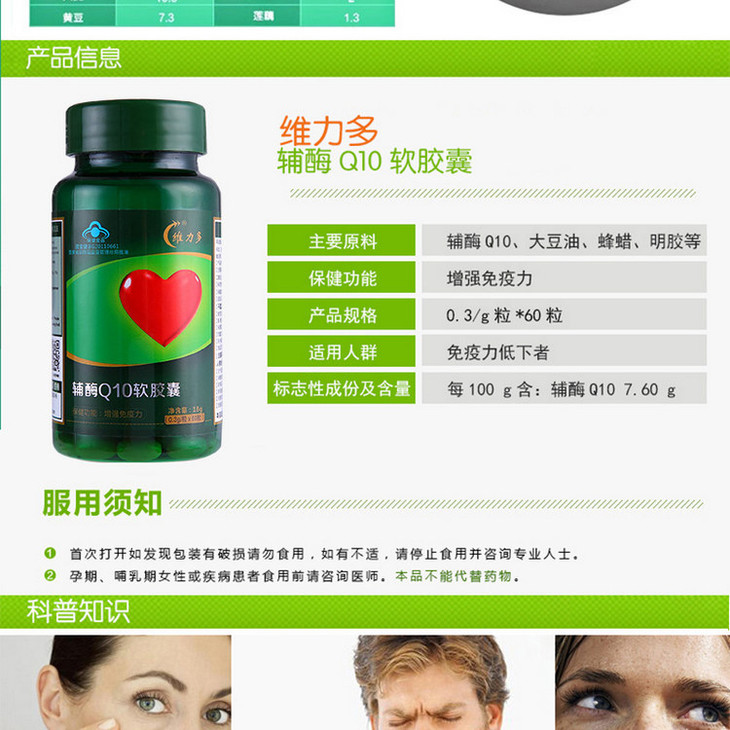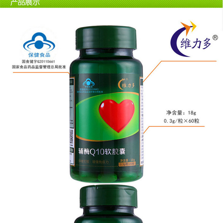 【一般贸易】【授权商品】维力多辅酶Q10软胶囊 增强抵抗力60粒*300mg