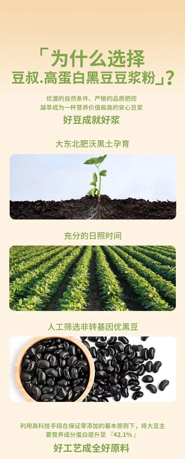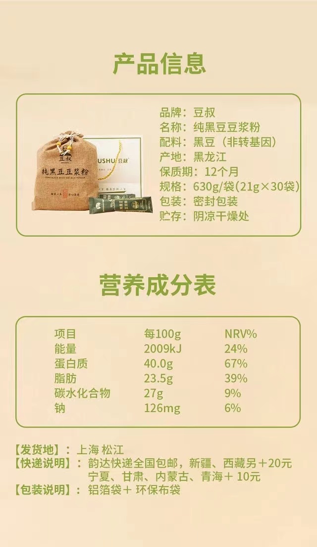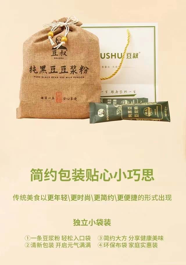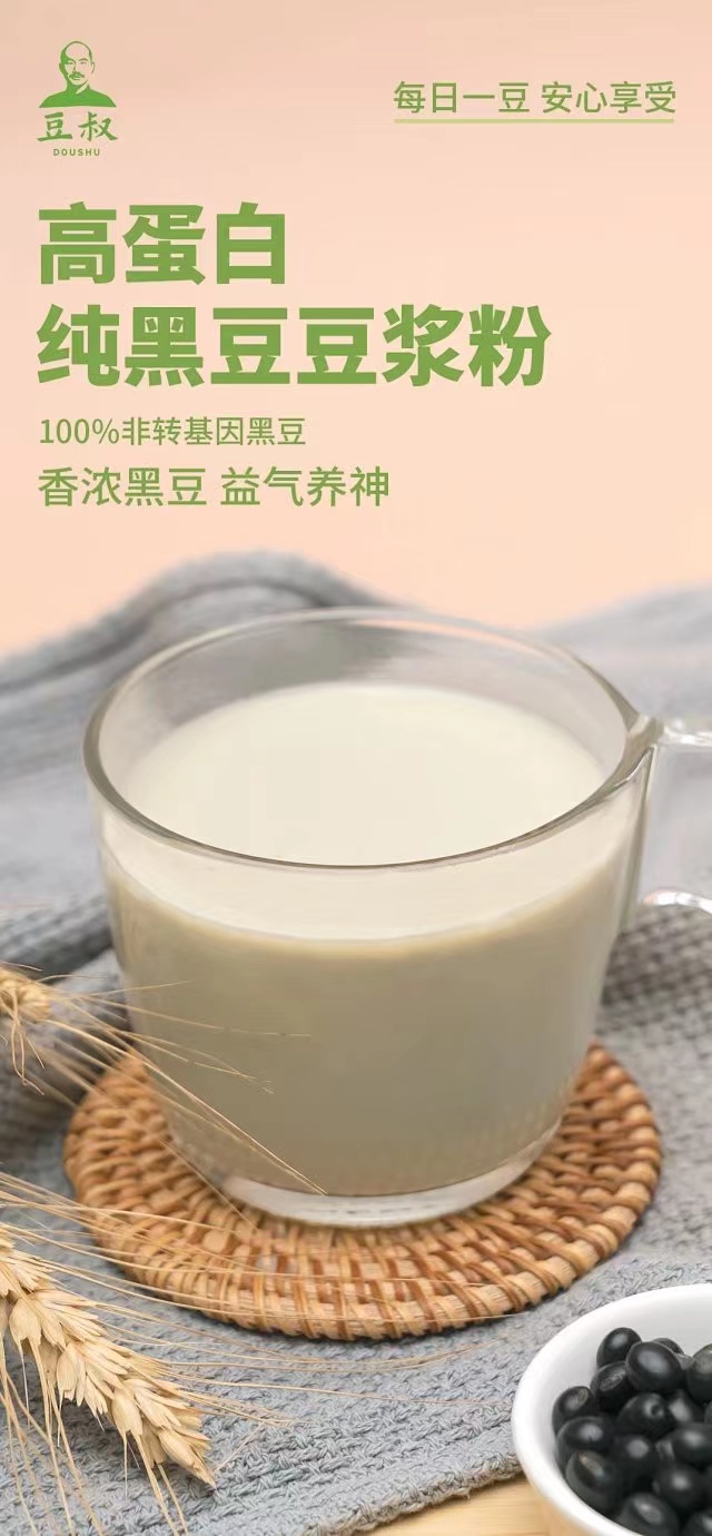 豆叔 高蛋白纯黑豆豆浆粉 100%非转基因黑豆 0添加 香浓黑豆 益气养神