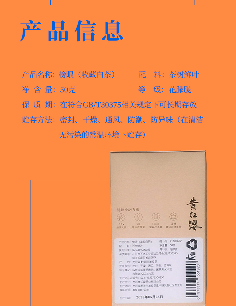 黄红缨收藏老白茶125g自饮牛皮纸自封袋装
