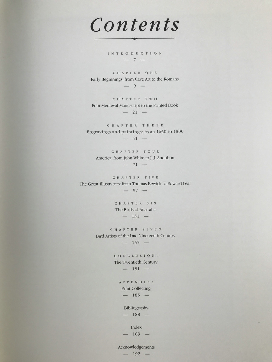 鸟类插图艺术图集,精装8开铜版纸印制非常精美。是书考察了博物志中非常有趣的鸟类作品插图,按照编年方式陆续展现了早期洞穴艺术及古罗马时期、中世纪手稿中的鸟类插图、17世纪中叶到19世纪的版画作品、美国鸟类插图尤其是最著名的奥杜邦、英国著名的版画家比维克、最后到十九二十世纪的鸟类插图艺术,总共有100余幅作品插图,是鸟类插图艺术的一场盛宴~