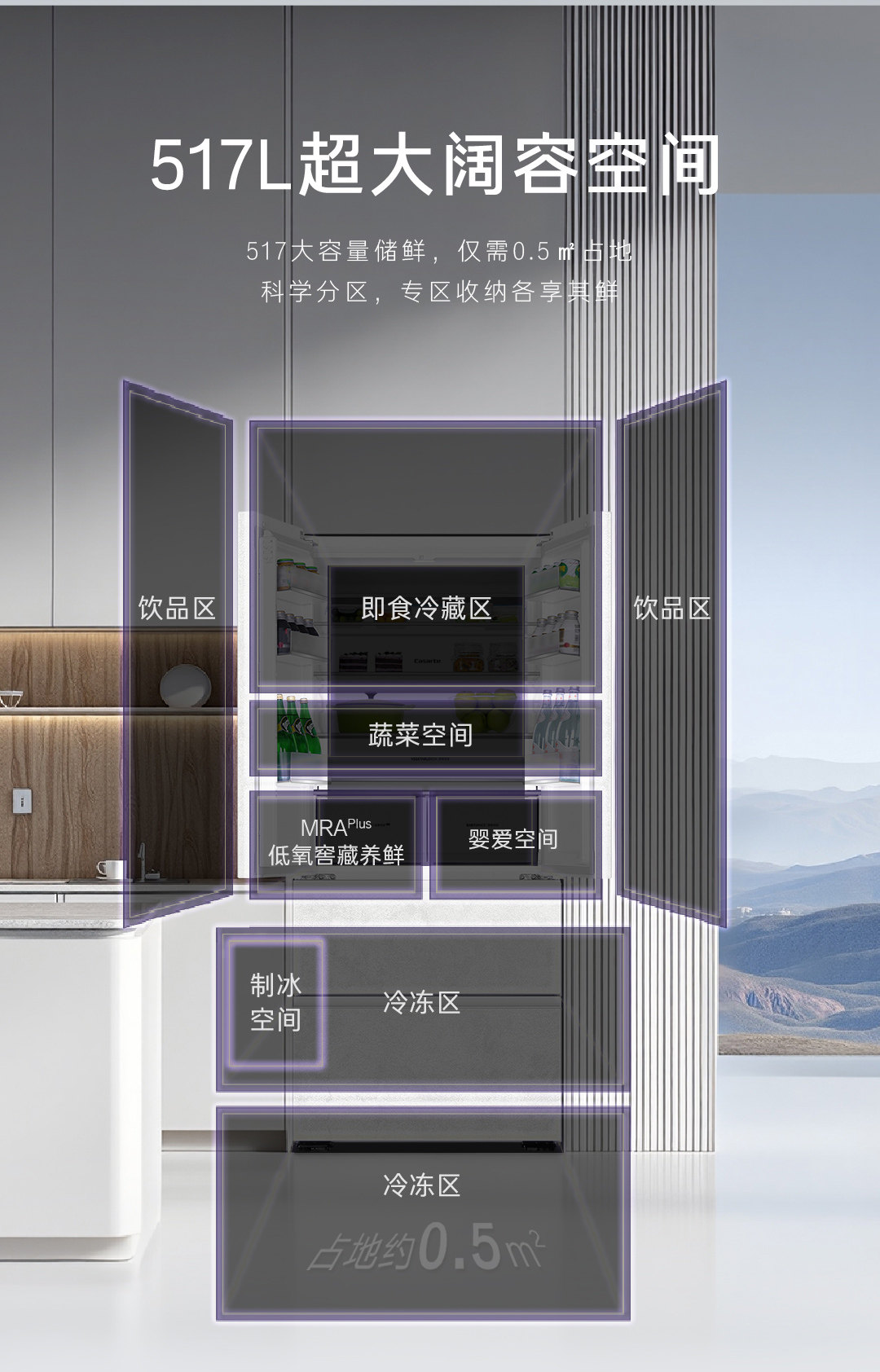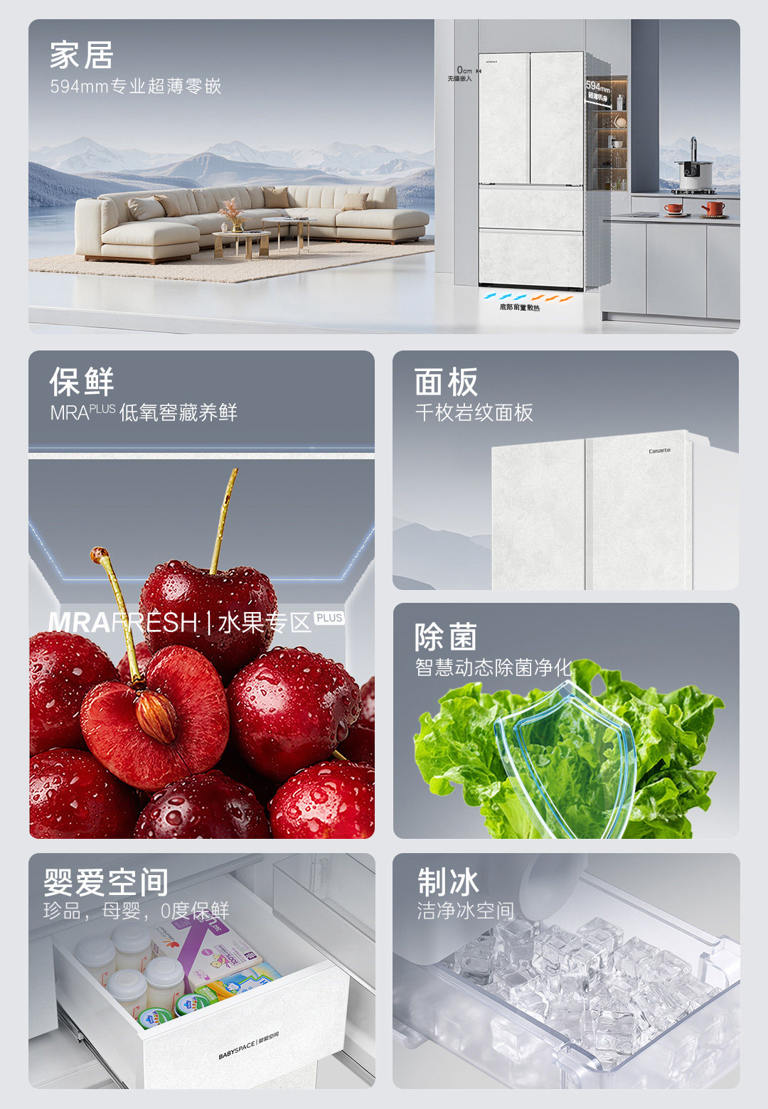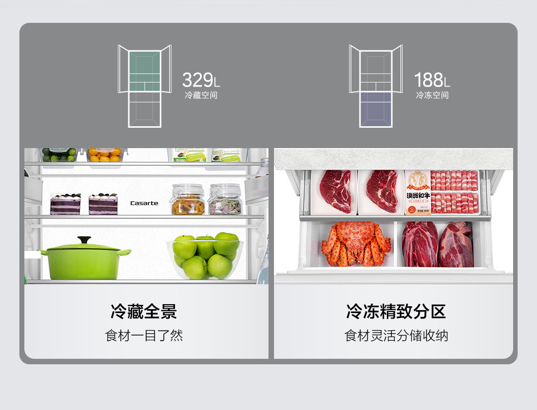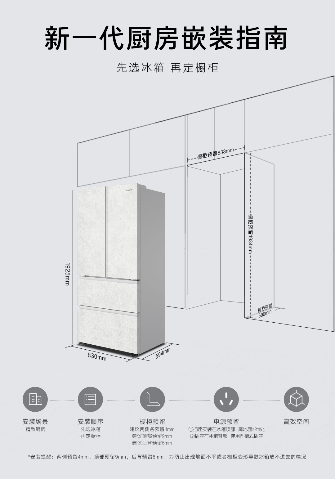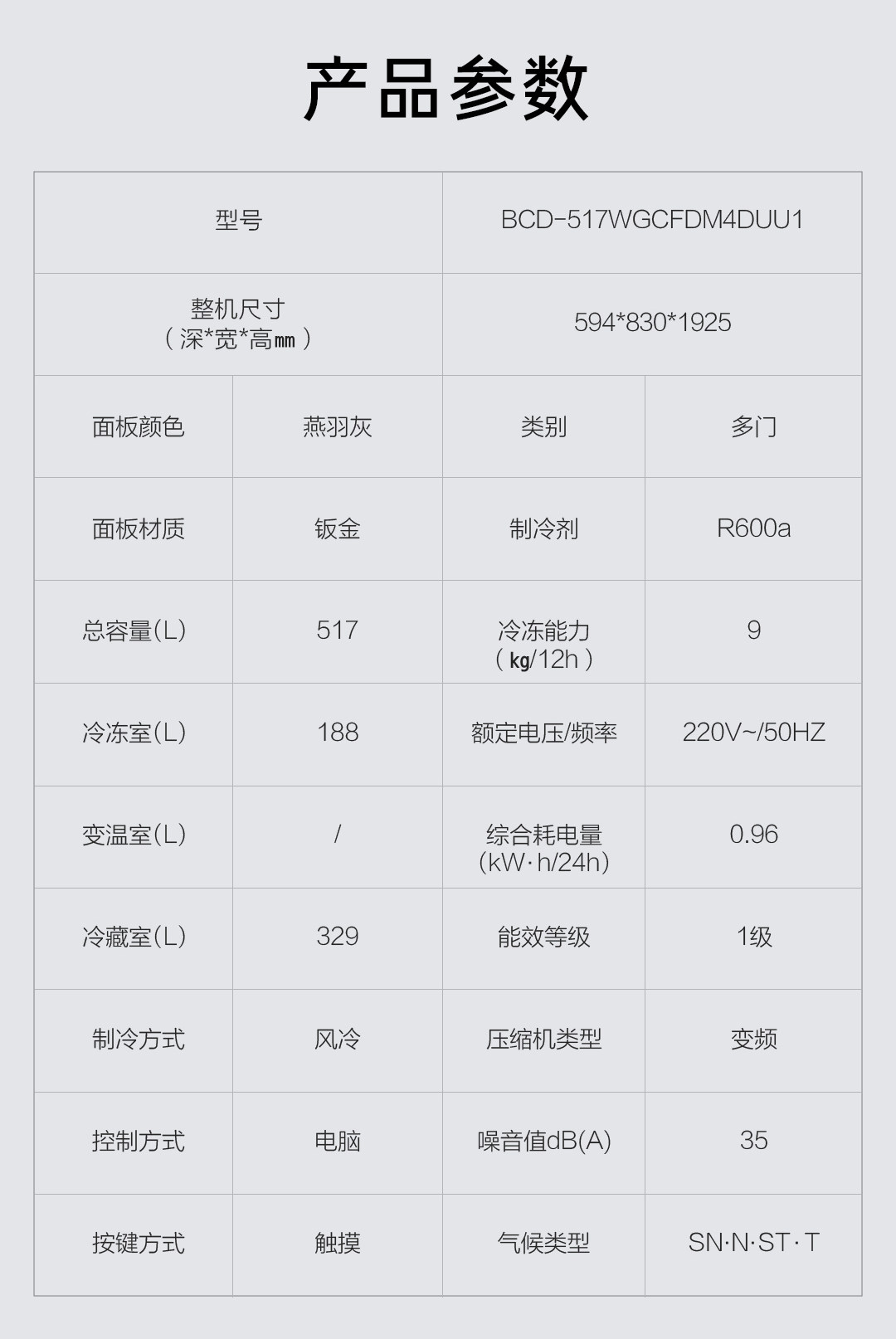 卡萨帝揽光517L制冰超薄零嵌入式四门风冷无霜家用电冰箱BCD-517WGCFDM4DUU1 517L燕羽灰
