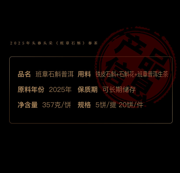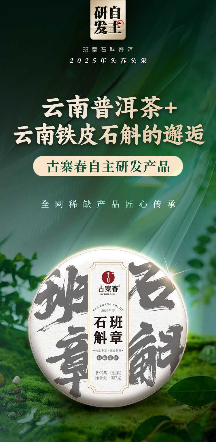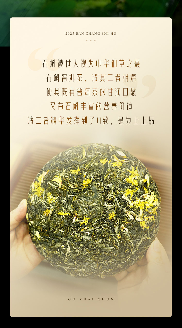 2025年【班章石斛】古寨春自主研发产品云南普洱茶云南铁皮石斛的邂逅 357g/饼