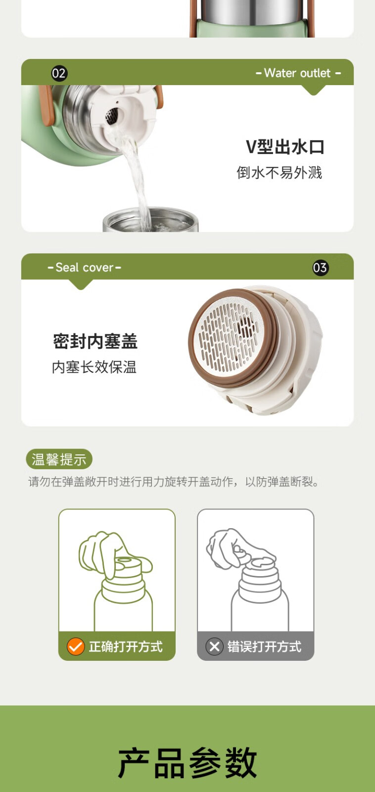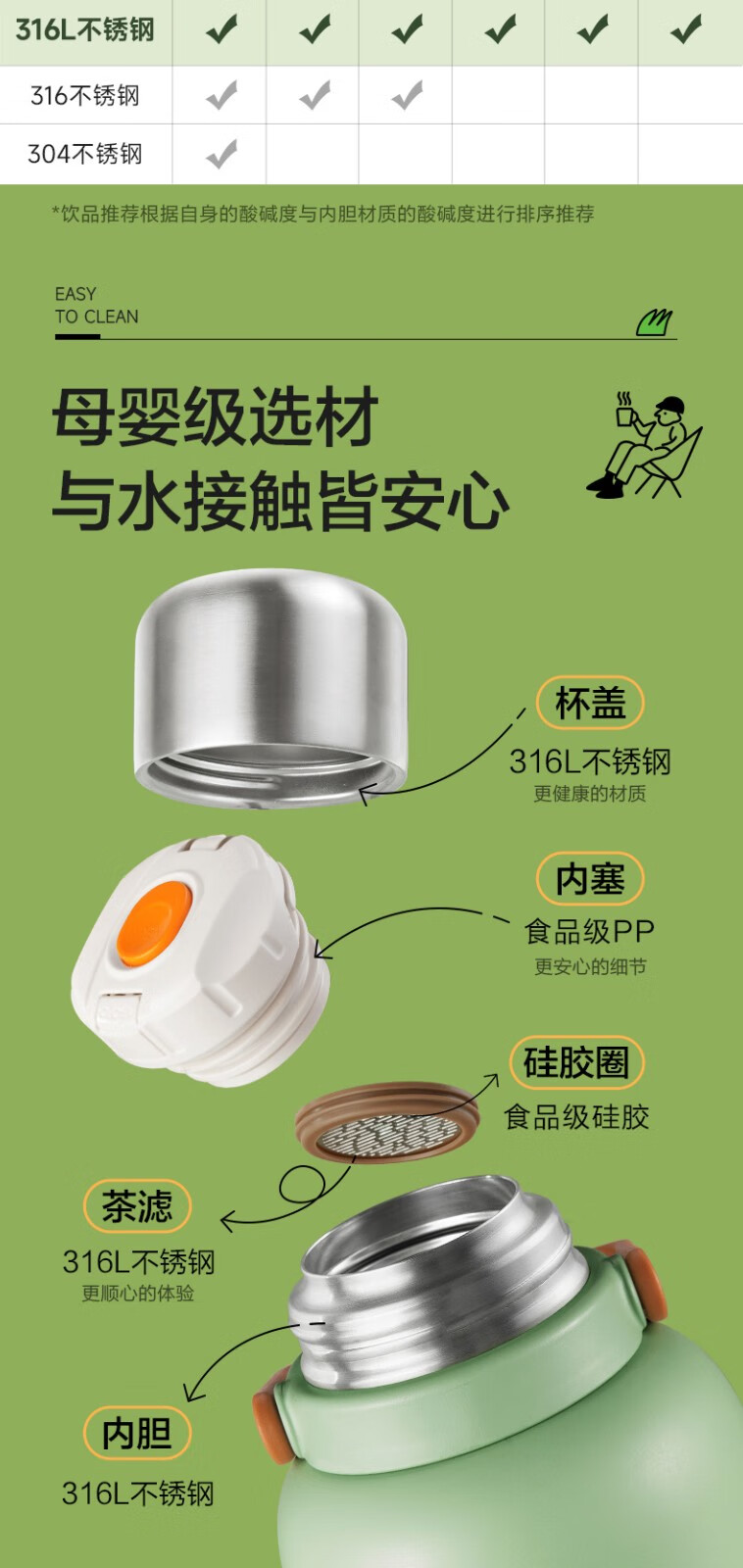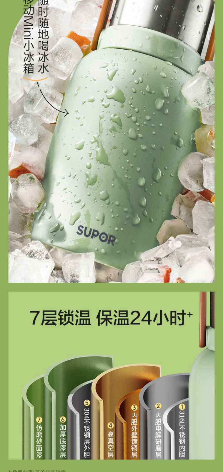 苏泊尔(SUPOR)保温壶316L不锈钢保温水壶家用大容量暖壶KCV13AC10岩木黑1.3L