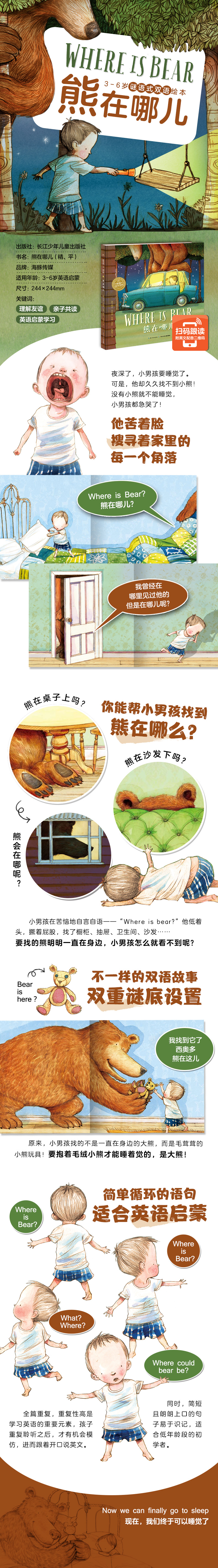 海豚传媒 绘本花园:熊在哪儿精装点读版宝宝睡前读物 2-3-4-6岁