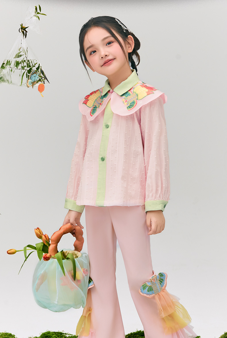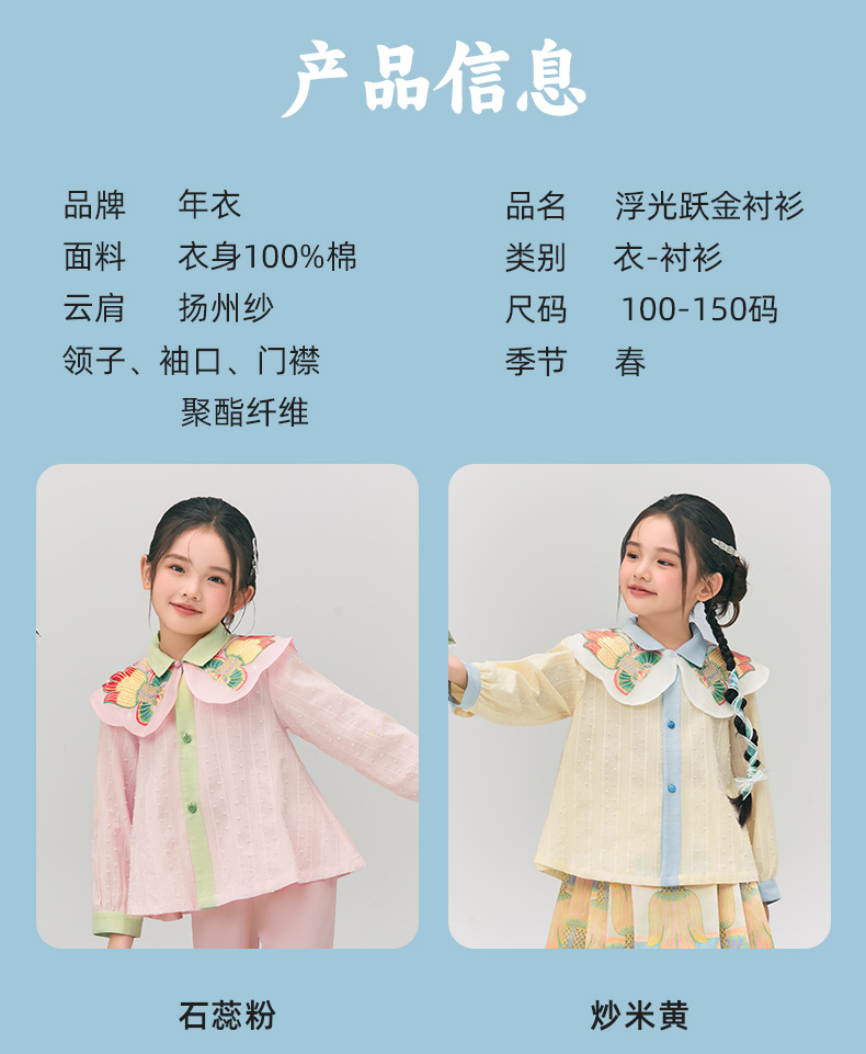 年衣童装女童衬衫2025春款长袖娃娃衫新中式复古儿童女孩浮光跃金衬衫