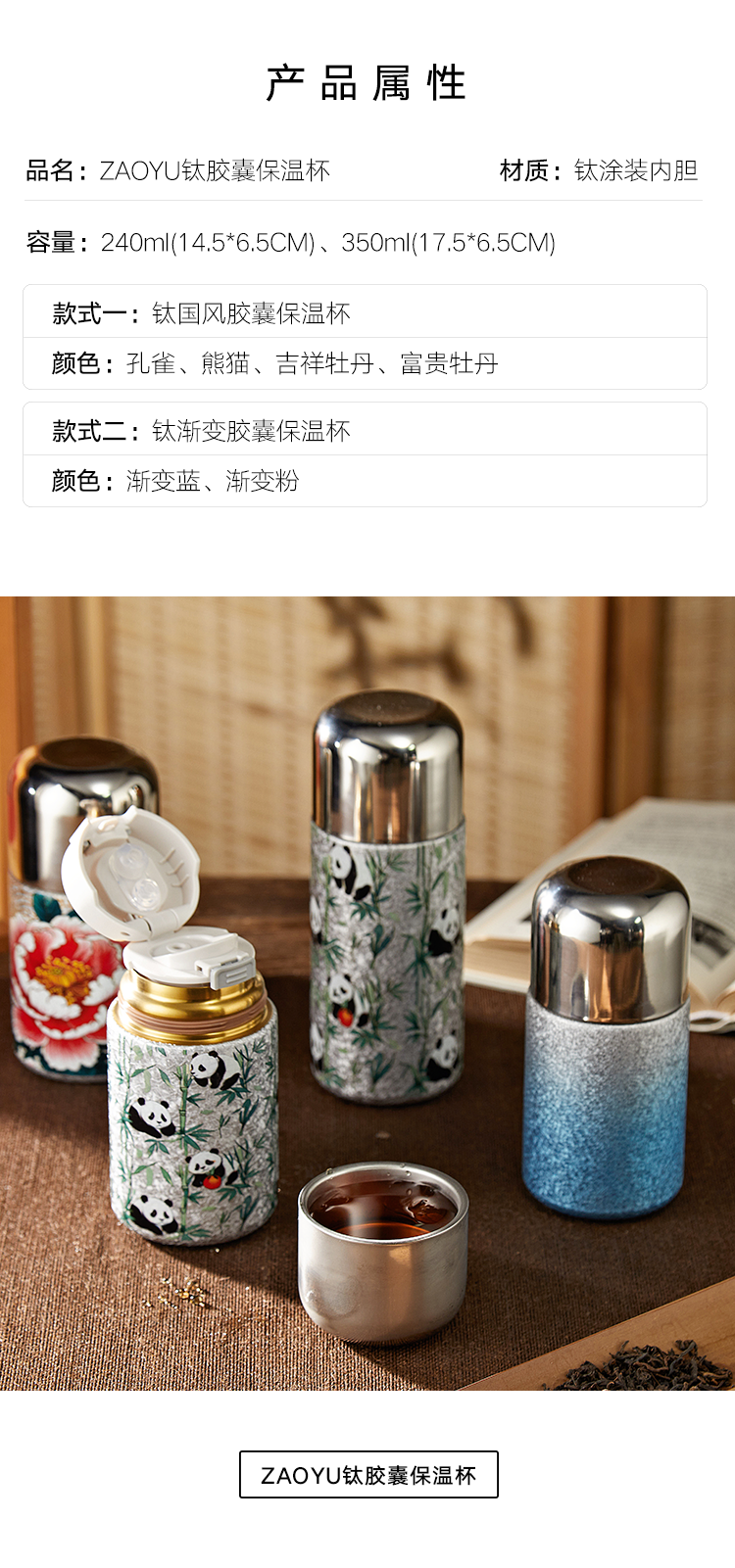 钛国风胶囊保温杯:孔雀、熊猫、吉祥牡丹、富贵牡丹