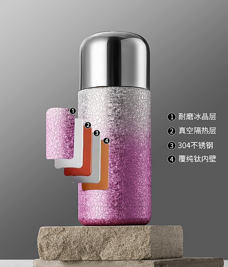 用钛做的保温杯,轻便耐摔;加上钛本身不是重金属,所以钛杯装热水没有不锈钢的铁腥味;